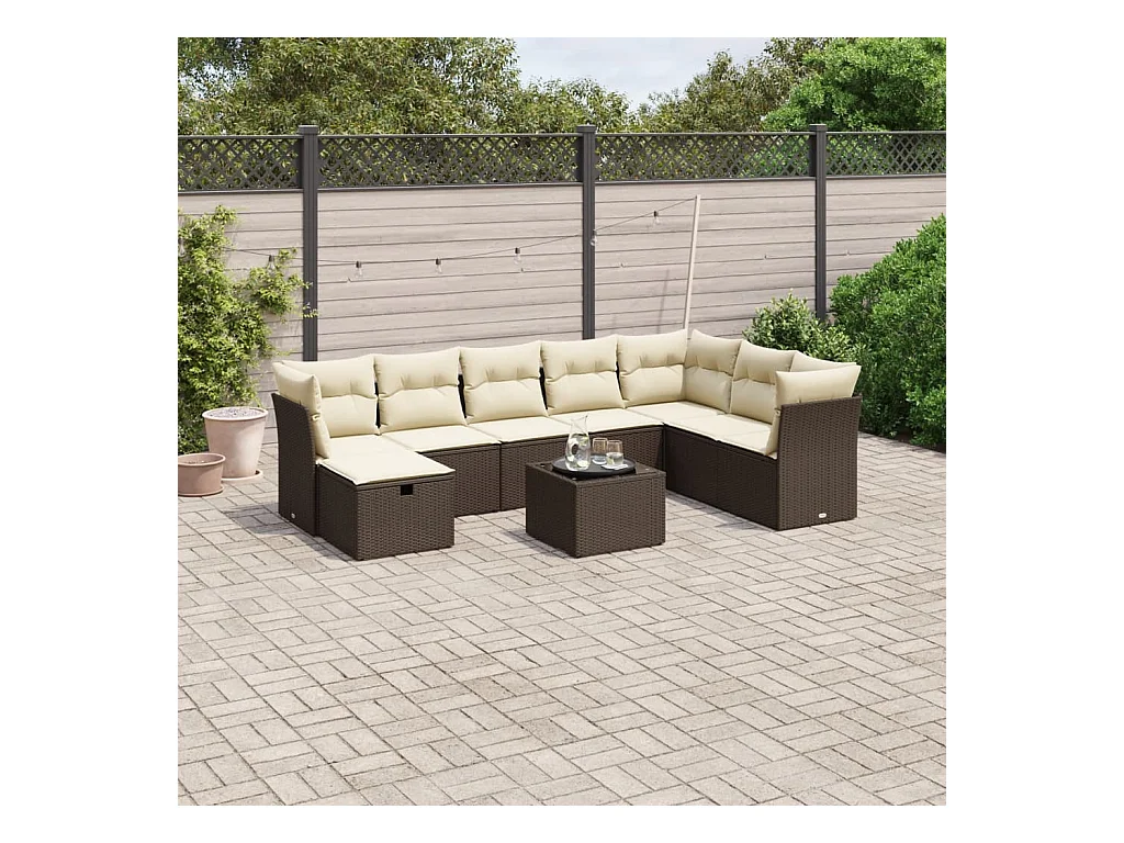 9 peças conjunto sofás para jardim com almofadões vime PE castanho