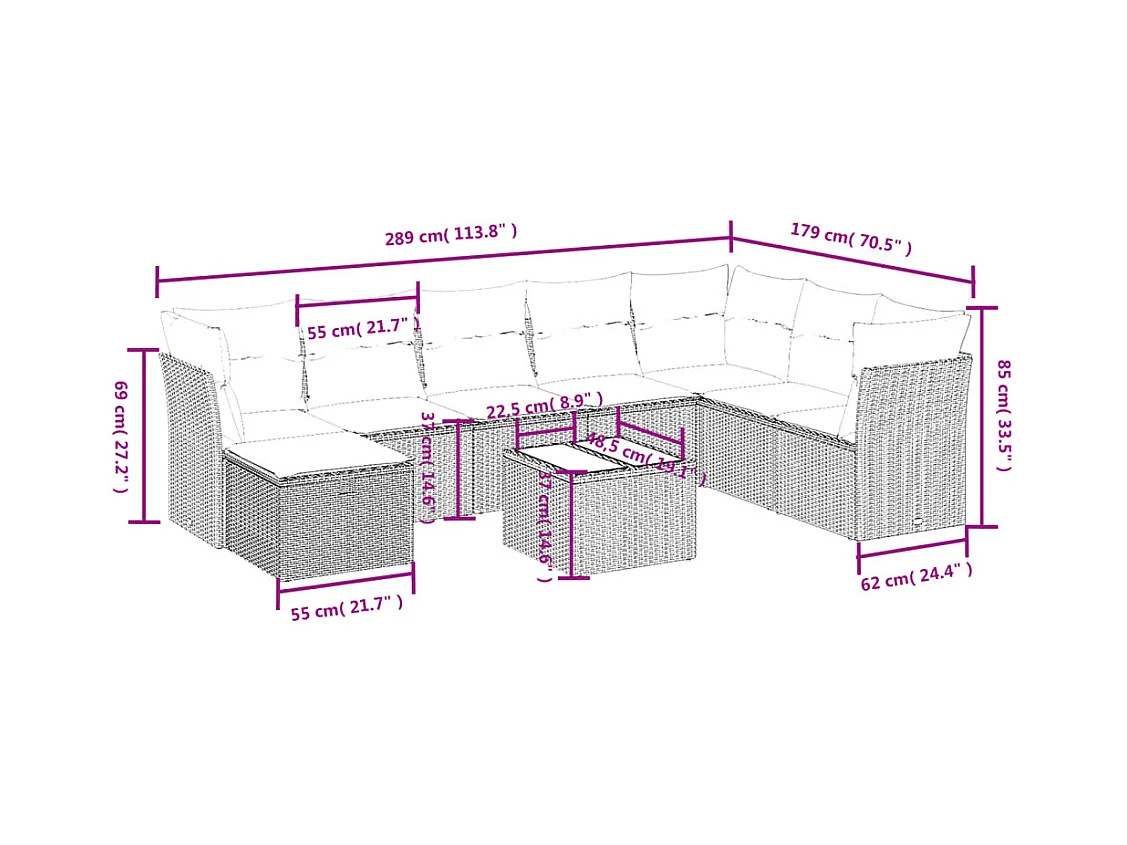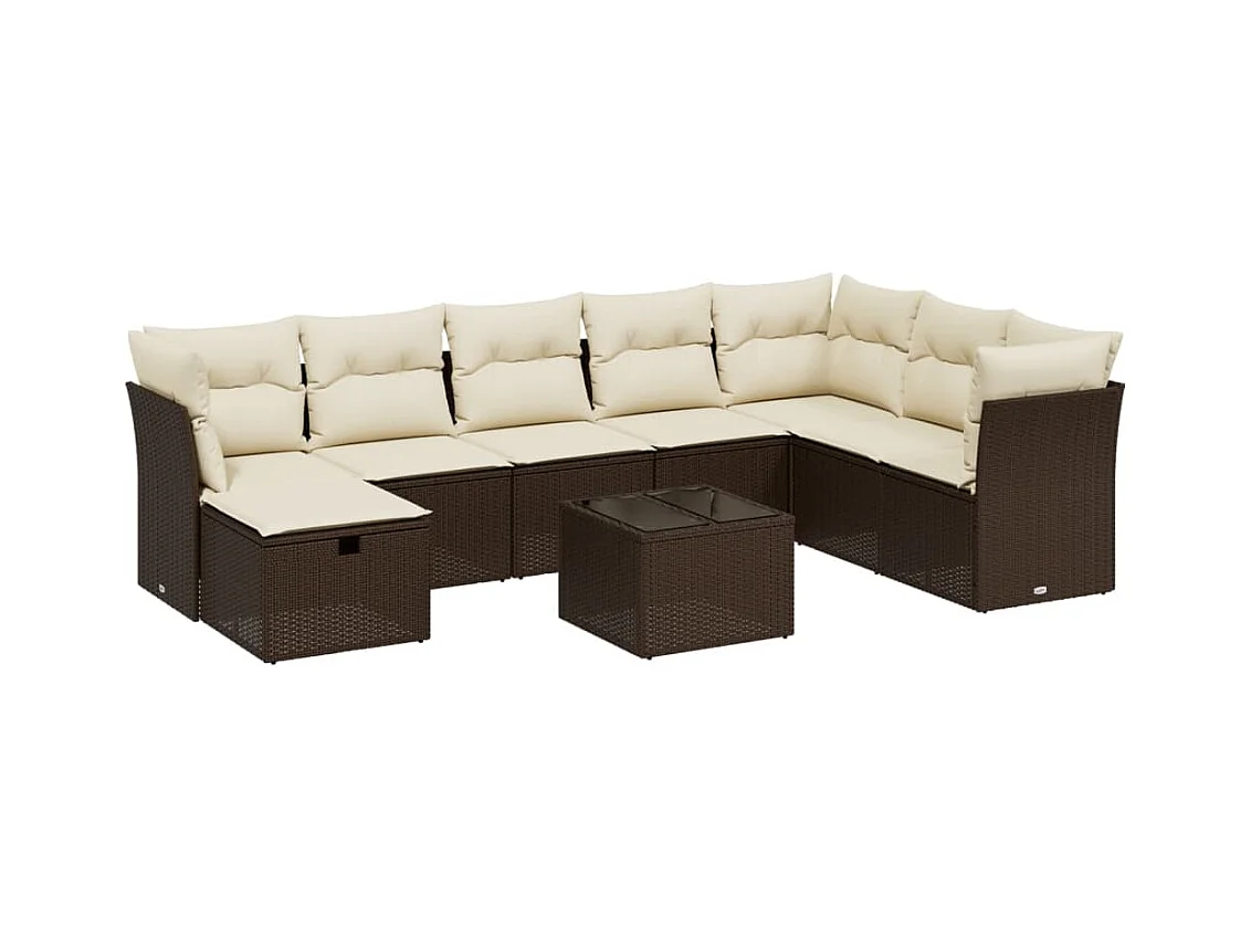 8 peças conjunto sofás de jardim com almofadões vime PE castanho