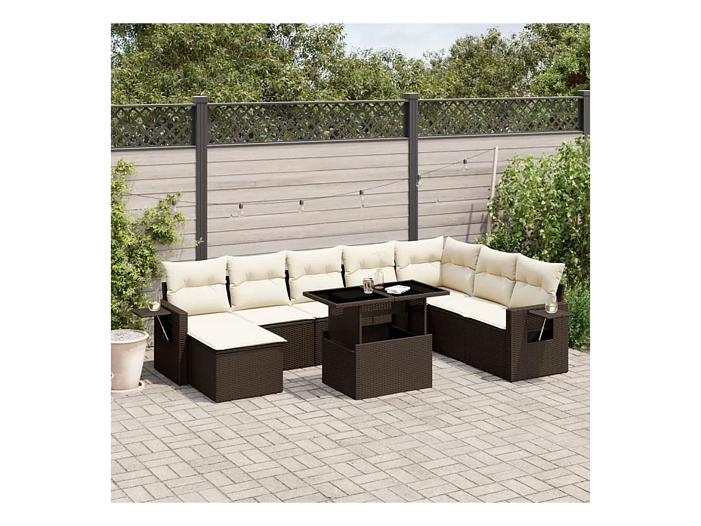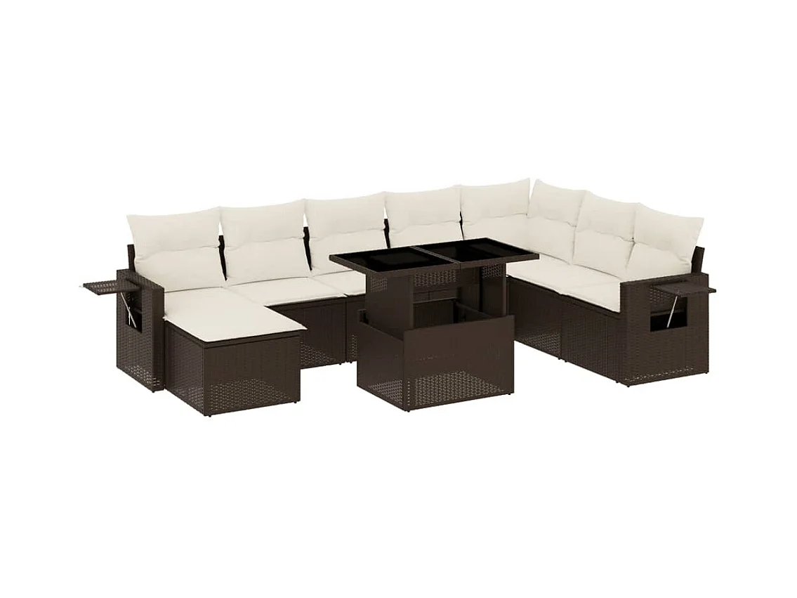 9 peças conjunto sofás para jardim com almofadões vime PE castanho