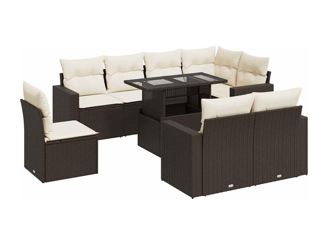 9 peças conjunto sofás para jardim com almofadões vime PE castanho