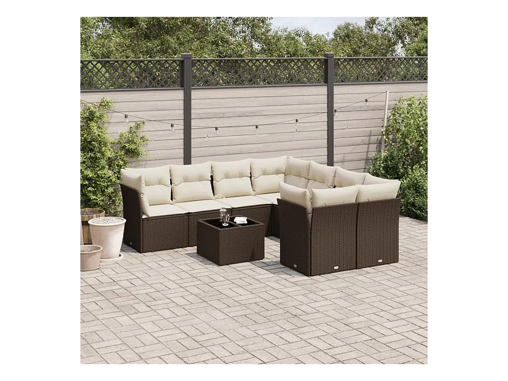9 peças conjunto sofás para jardim com almofadões vime PE castanho
