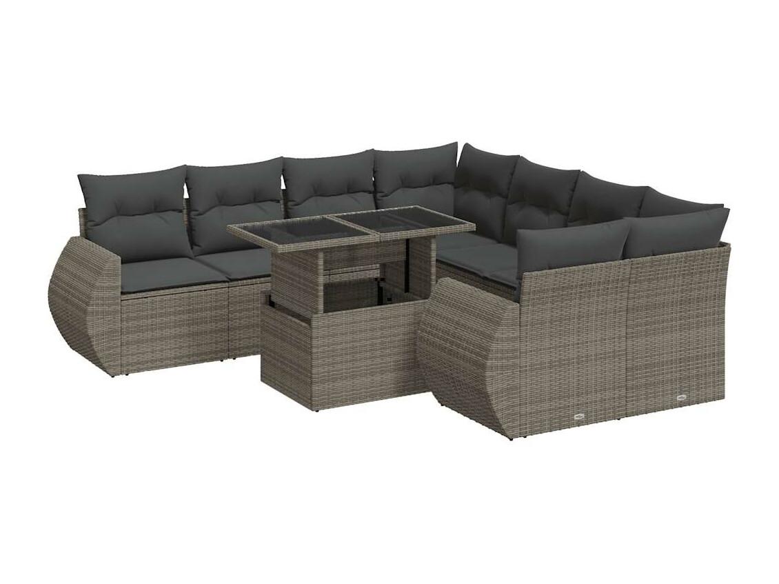 9 peças conjunto sofás para jardim com almofadões vime PE cinzento