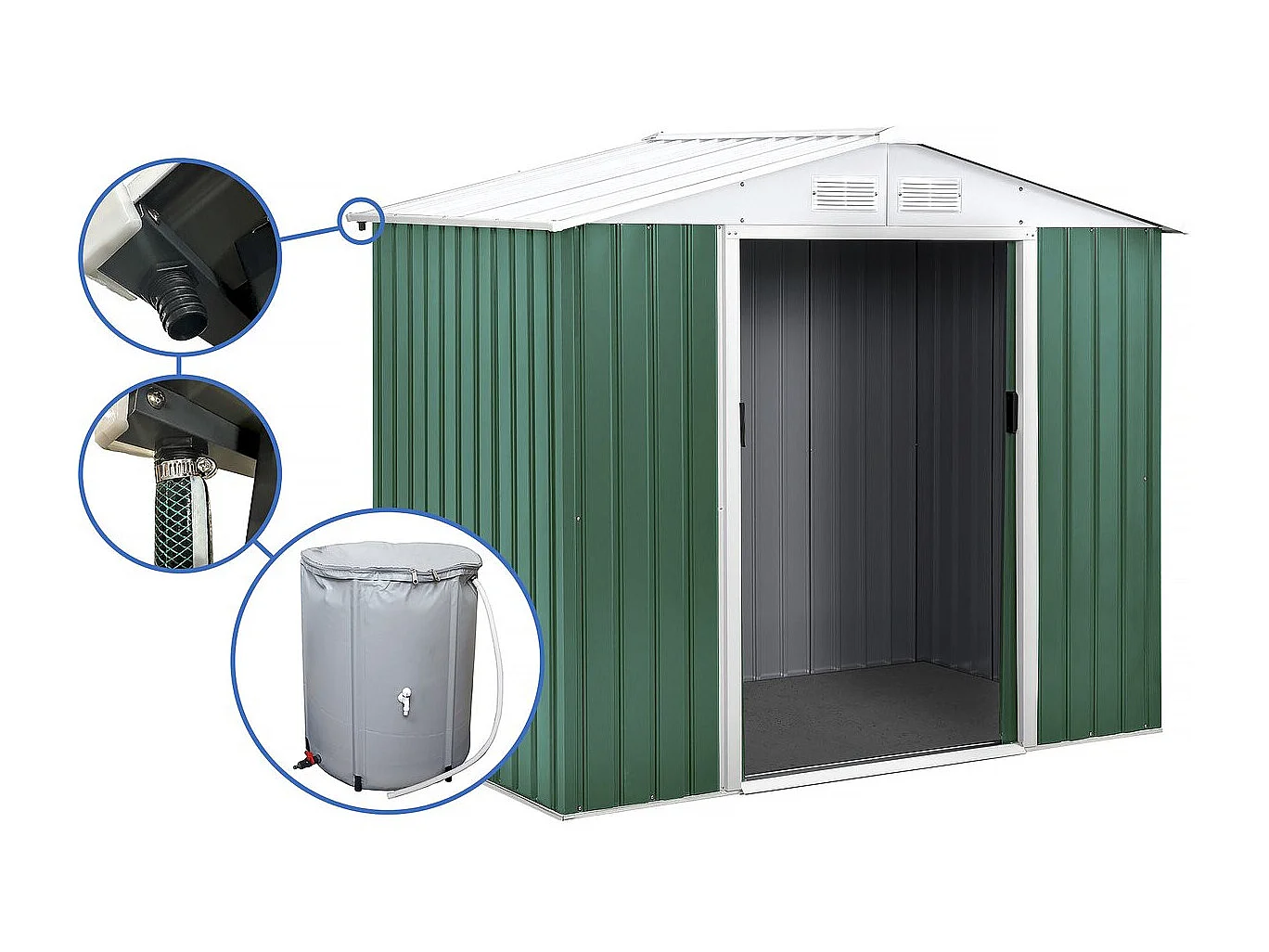 Abrigo de jardim em metal "Rosas" 4,07 m² com recuperador de água e calha integrada
