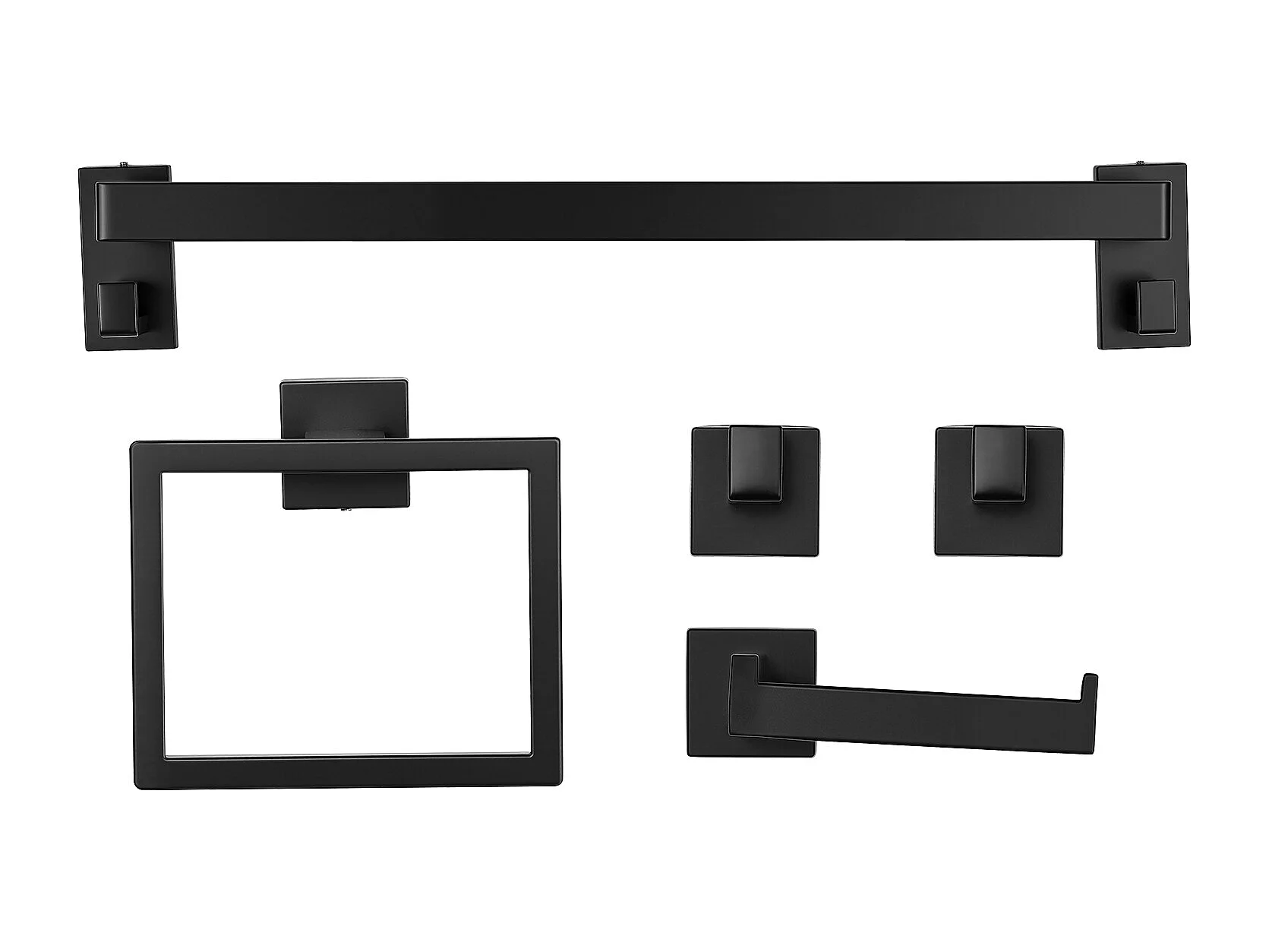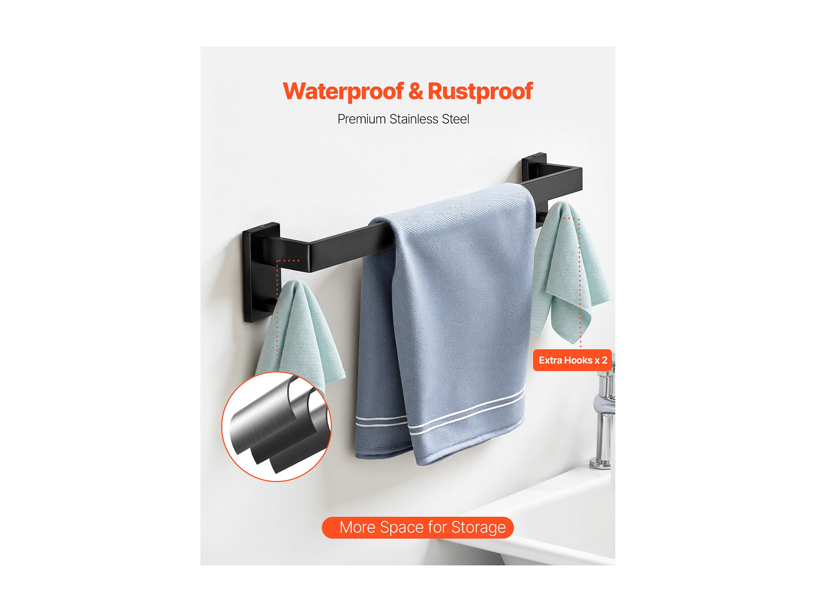 Acessórios de Banheiro SucceBuy 5PCs, Toalheiro de Parede de Aço Inoxidável, Barra 40 cm, com Suportes de Toalha Quadrados, 2 Ganchos para Roupão