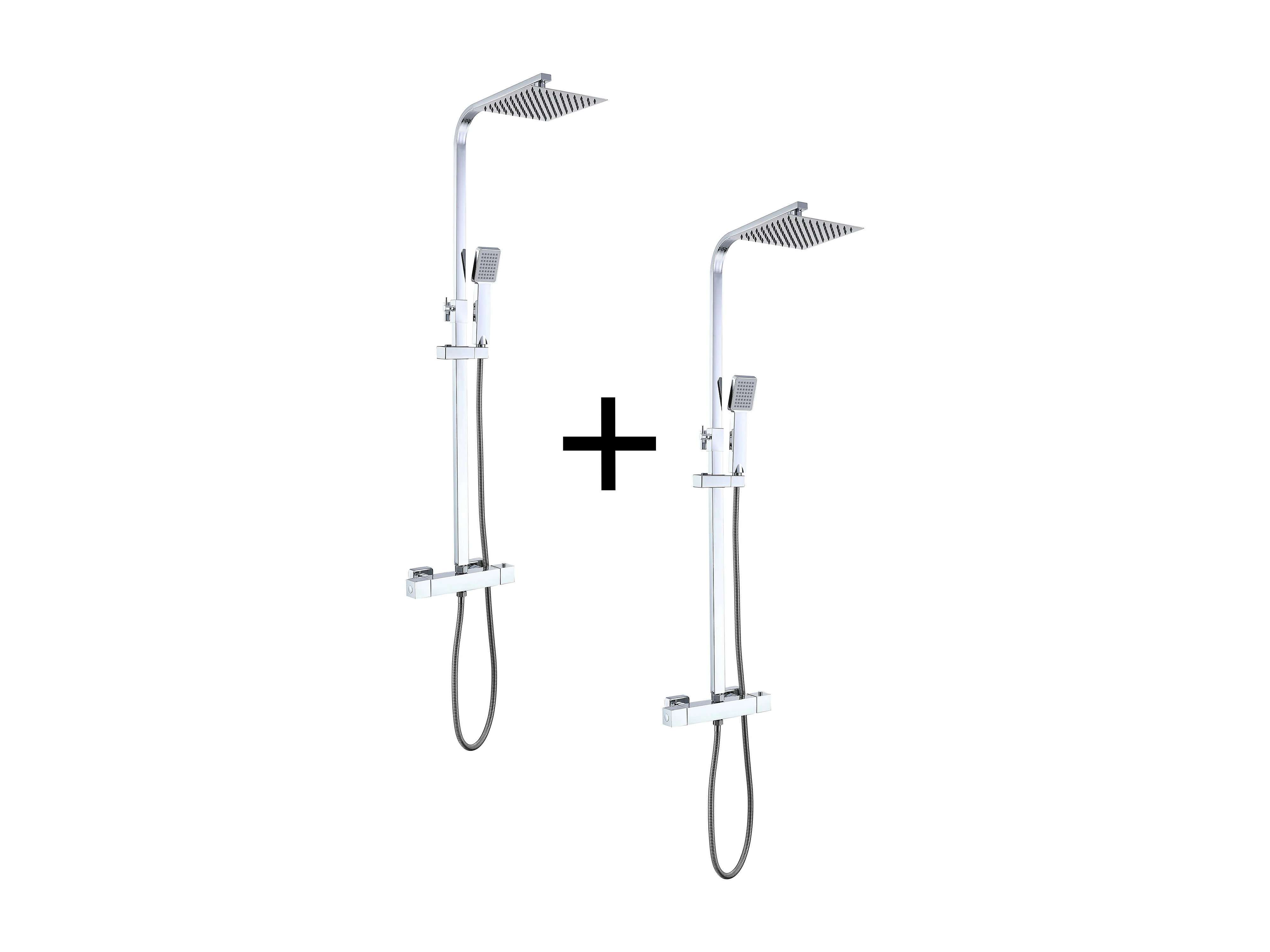 AICA 2 Columnas de chuveiros termostáticos em cromado brilhante com chuveiro quadrado e chuveiro de mão com coluna ajustável