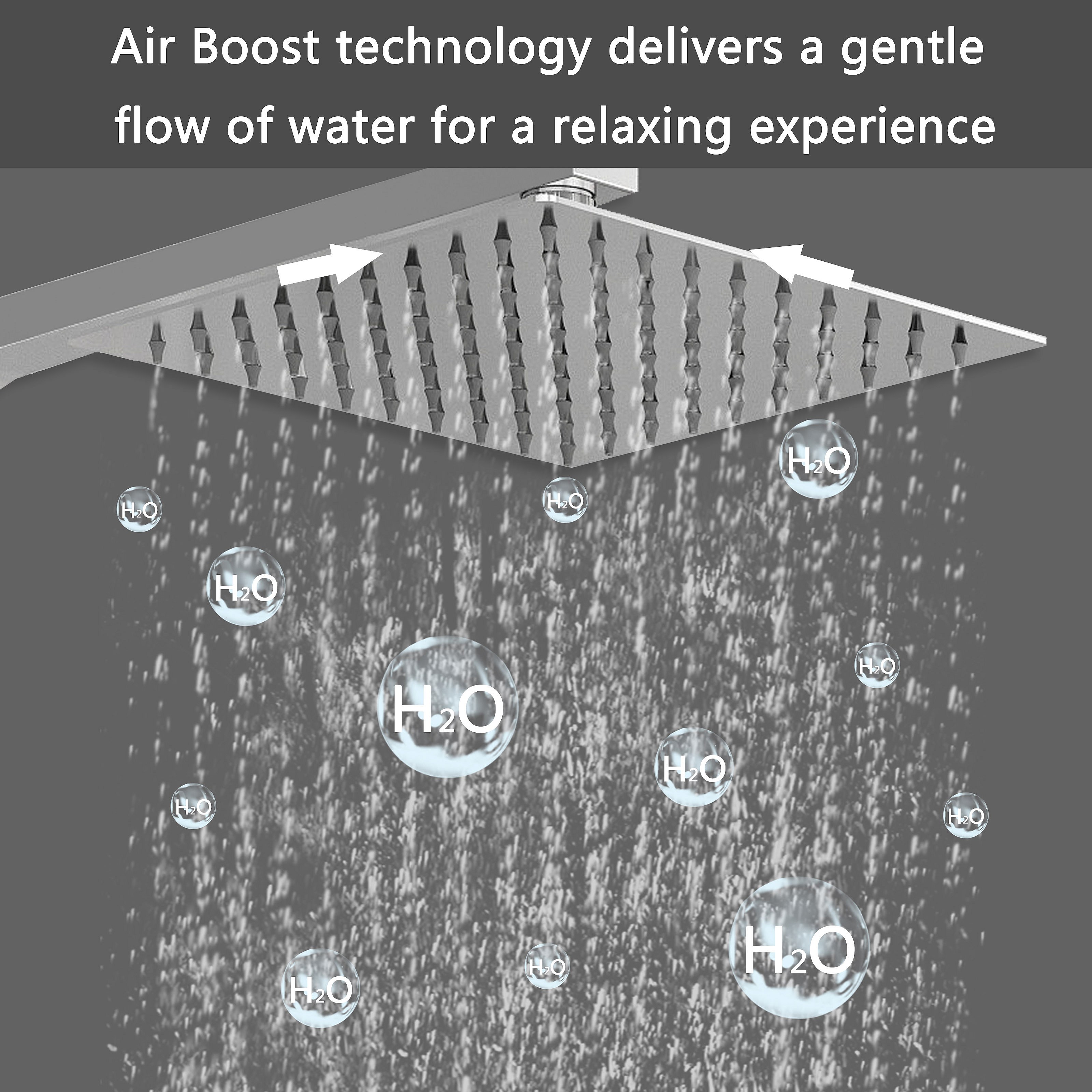 AICA Coluna de chuveiro termostática cromada, chuveiro quadrado e chuveiro superior grande