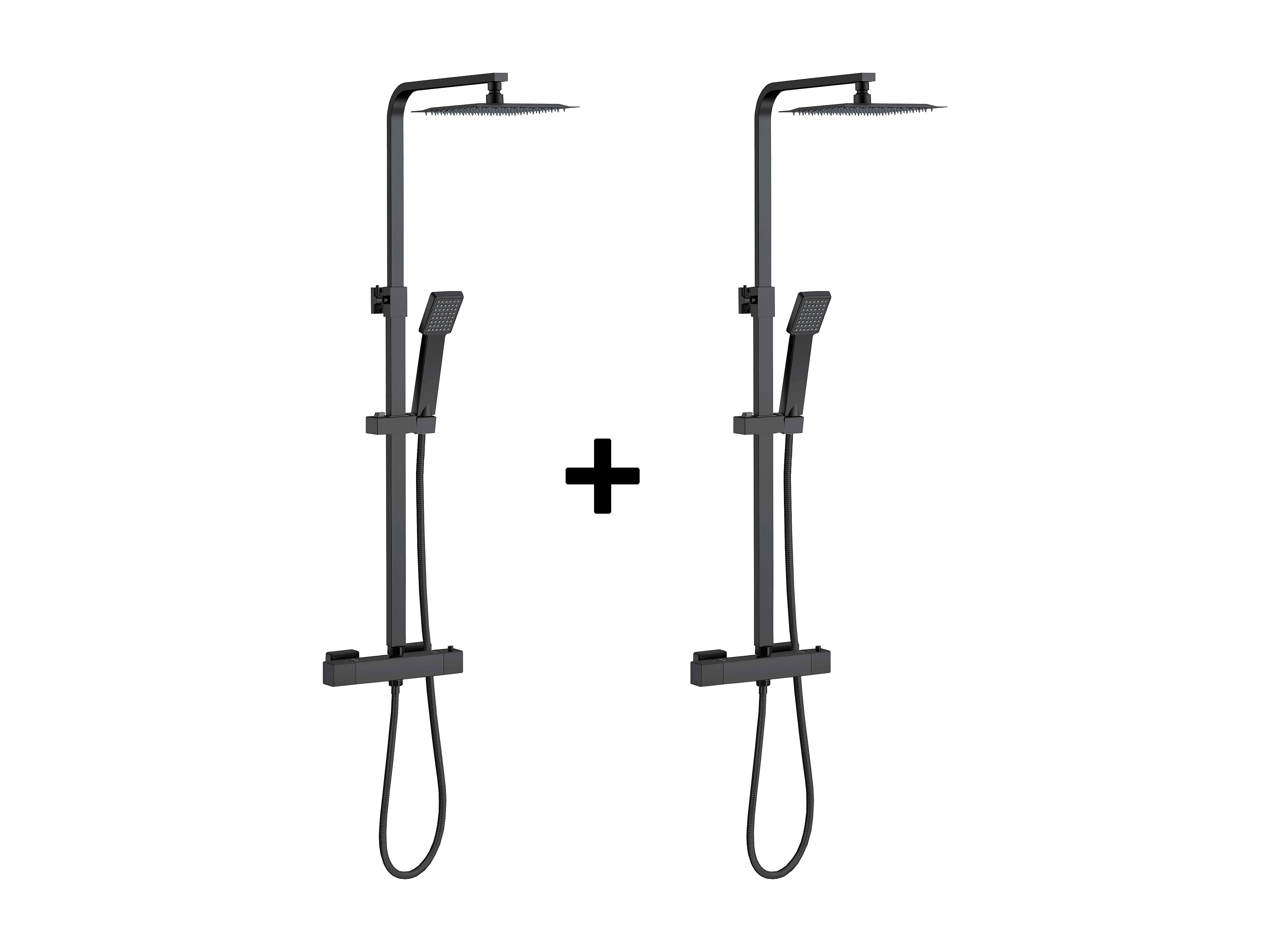 AICA conjuntos de chuveiro termostático preto fosco com chuveiro quadrado, chuveiro de mão e coluna ajustável x2