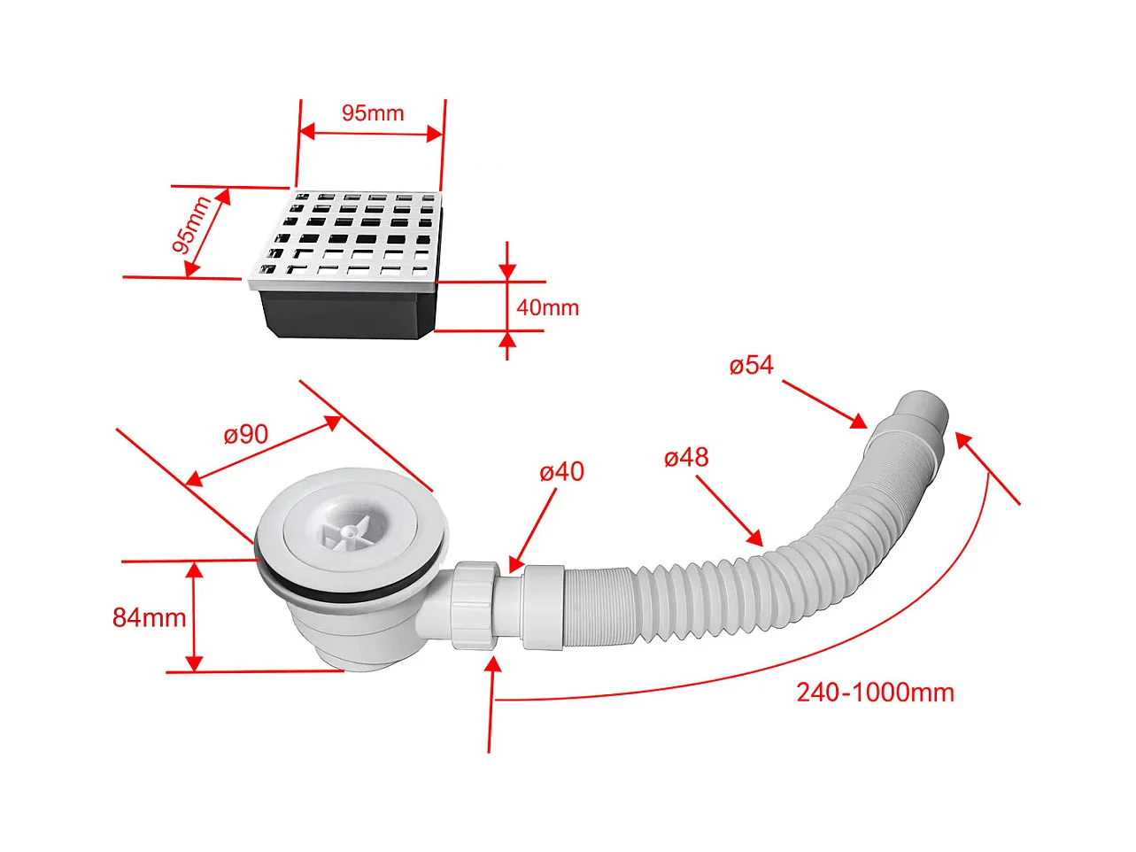 Base de duche Retangular Branco 120x80x3cm+Acessórios de drenagem-AICA