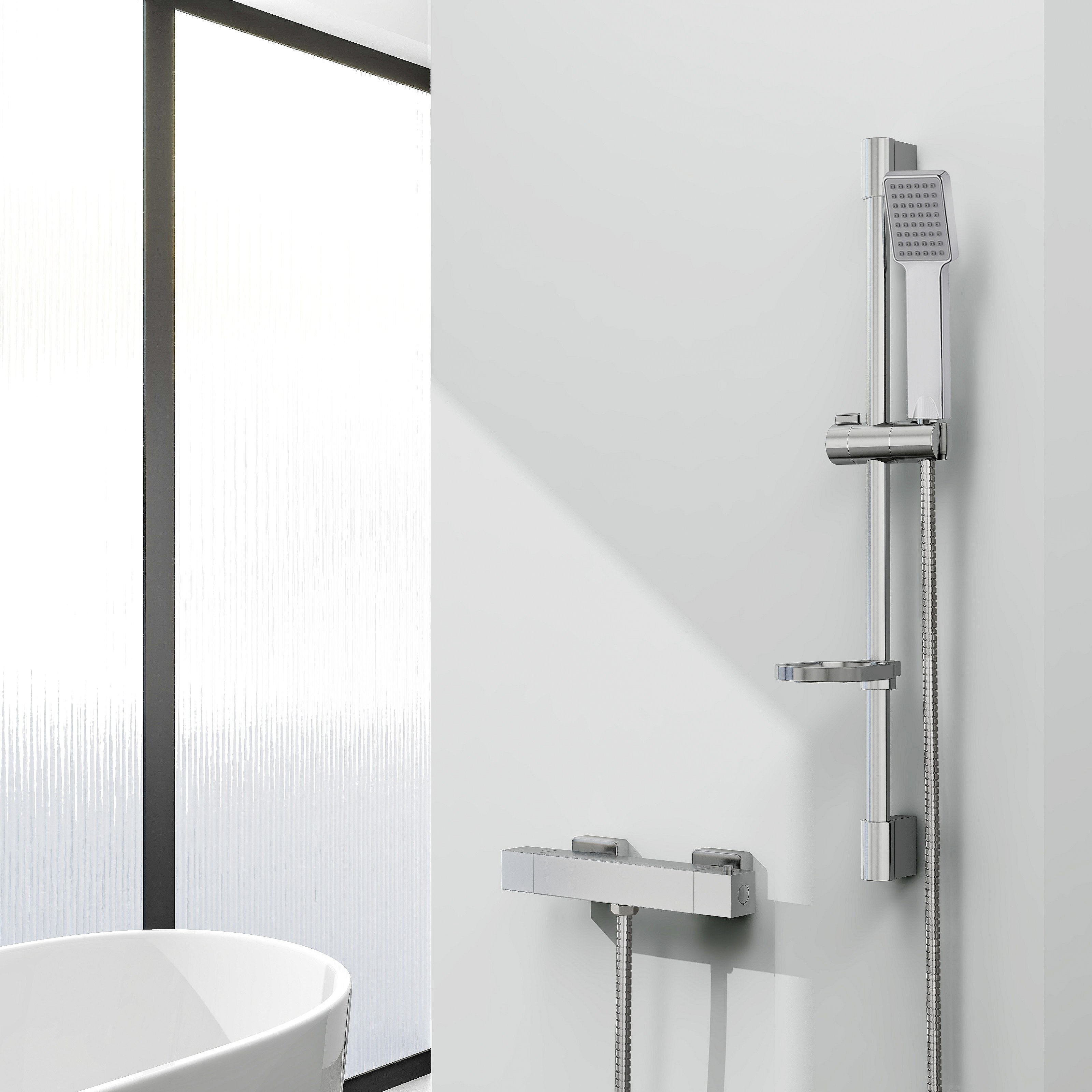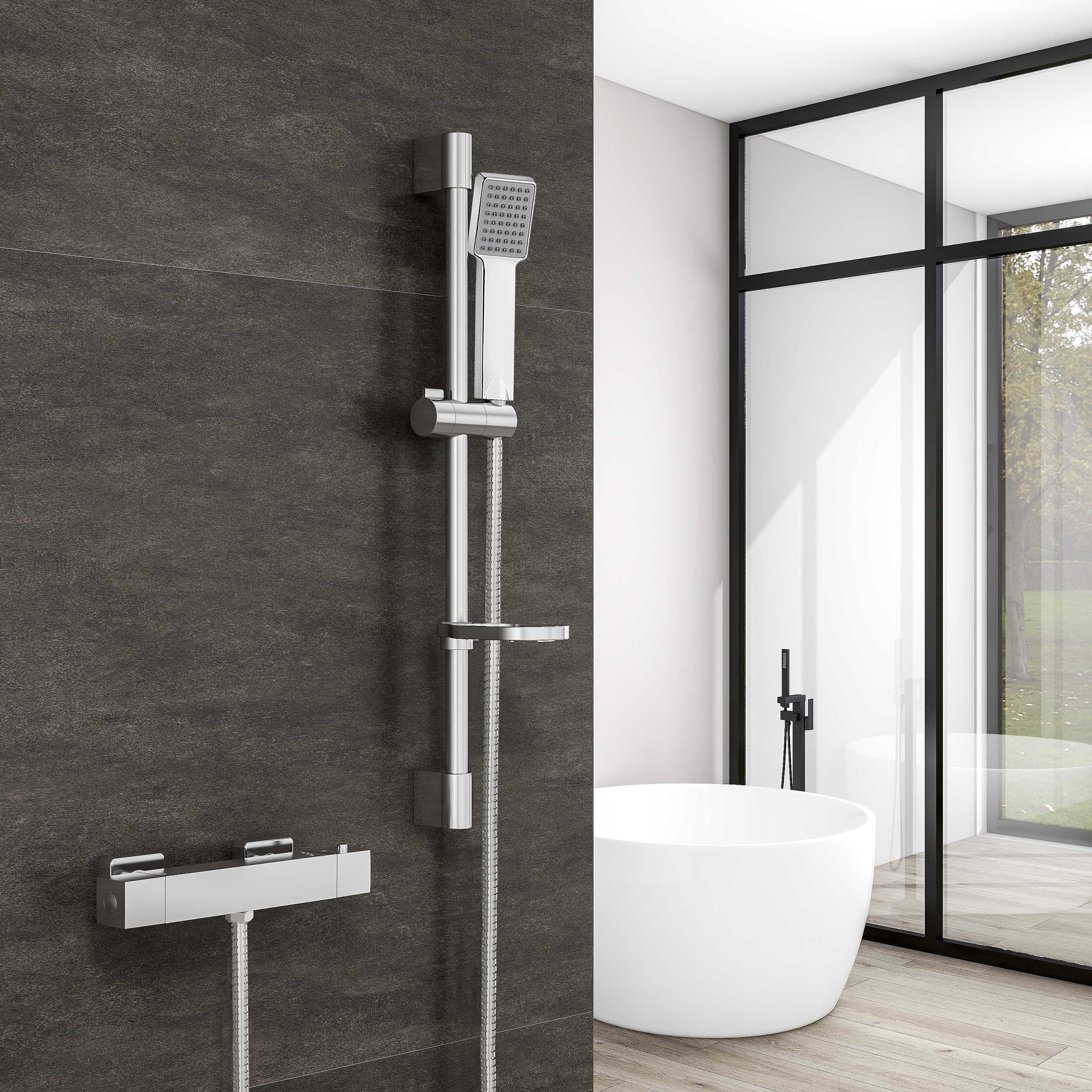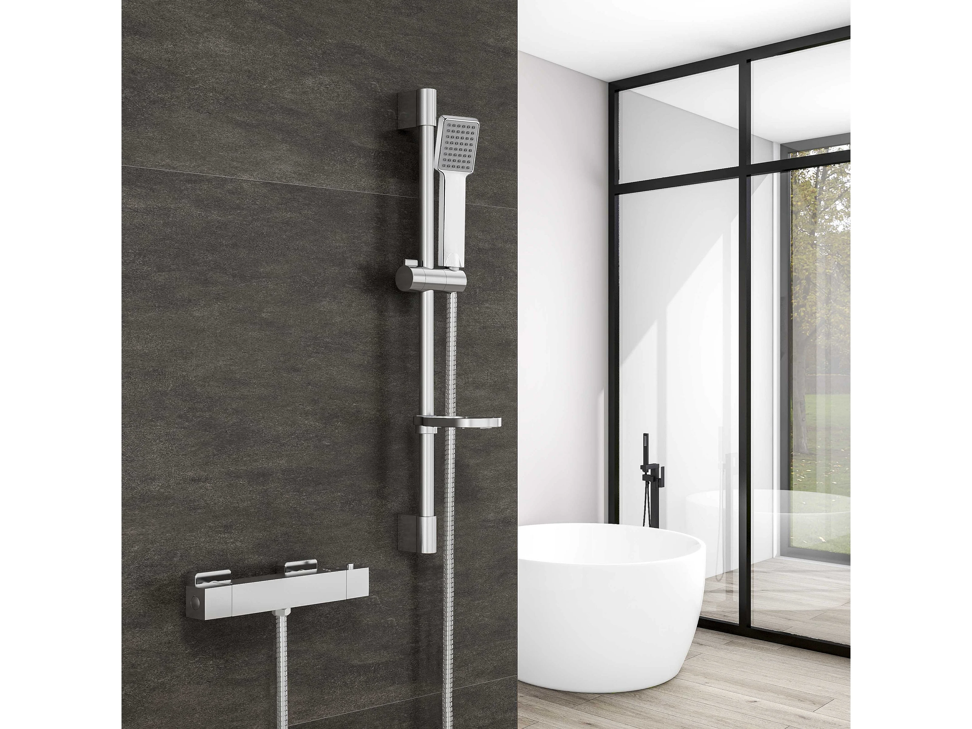 AICA Coluna de chuveiro termostática cromada com cabeça quadrada, aspersor superior e barra ajustável