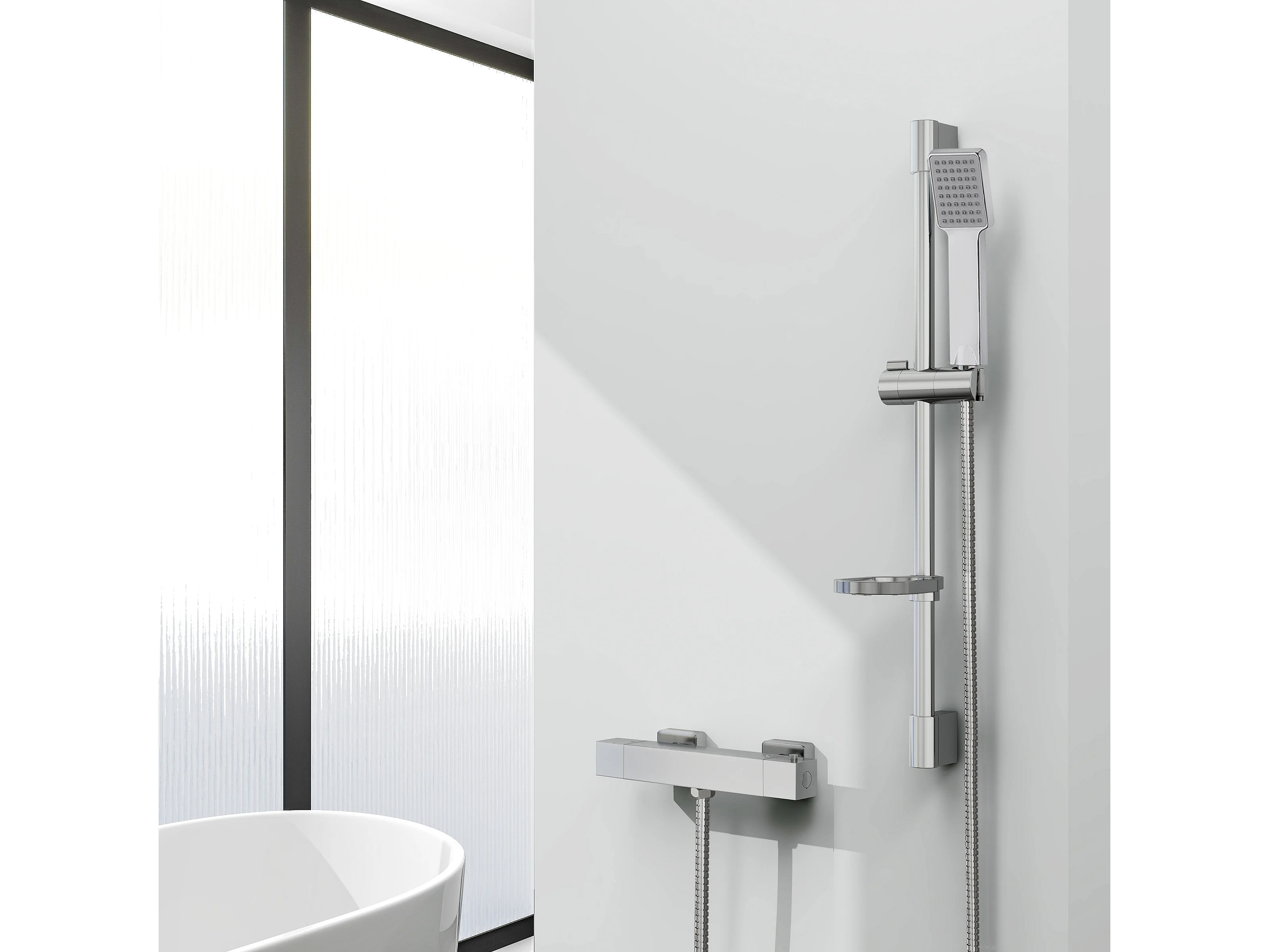 AICA Coluna de duche termostática cromada | Alcachofra Praça Grande | Barra ajustável 73-115 cm | Sistema de duche superior