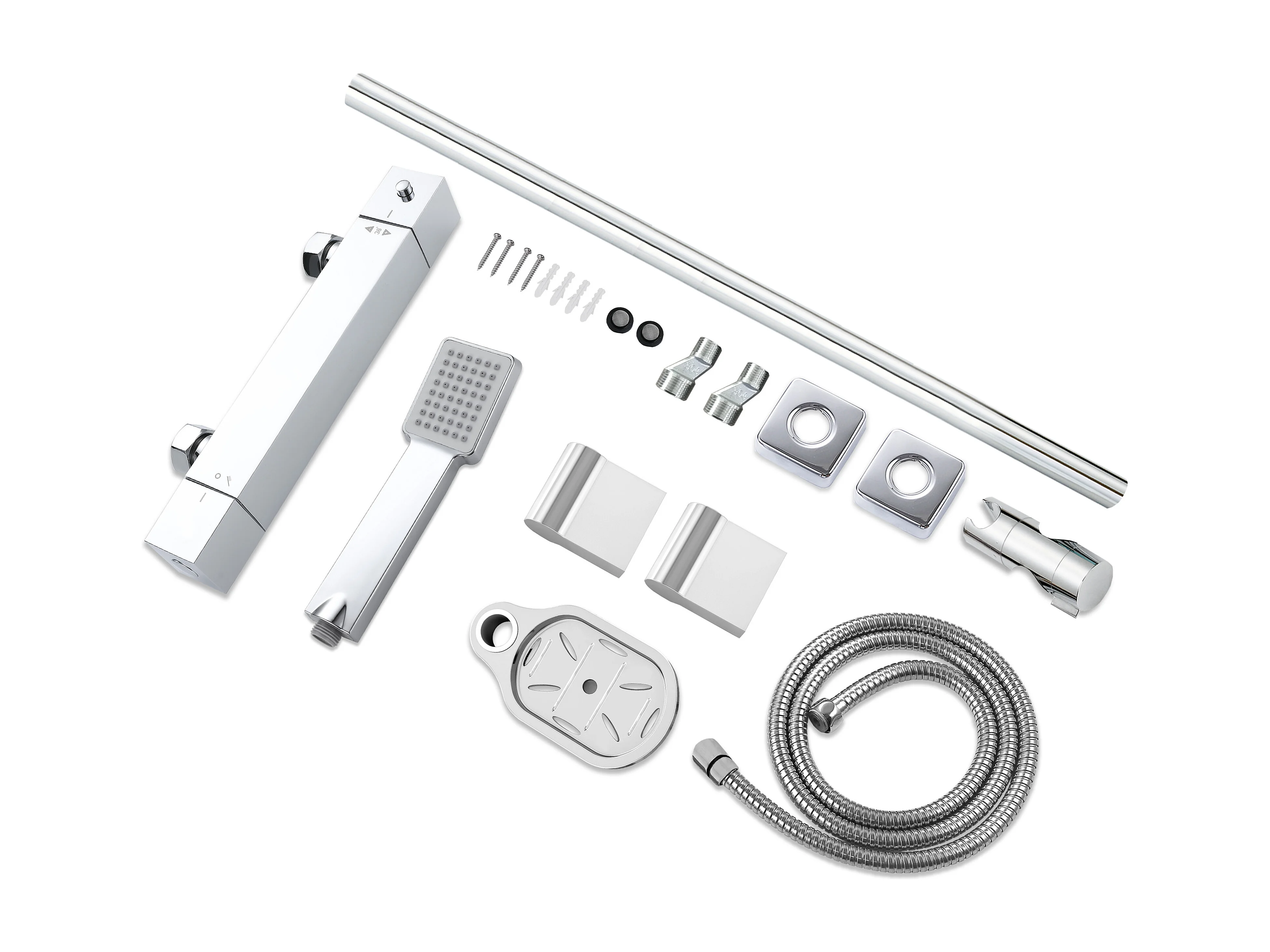 AICA Coluna de chuveiro termostática cromada com cabeça quadrada, aspersor superior e barra ajustável