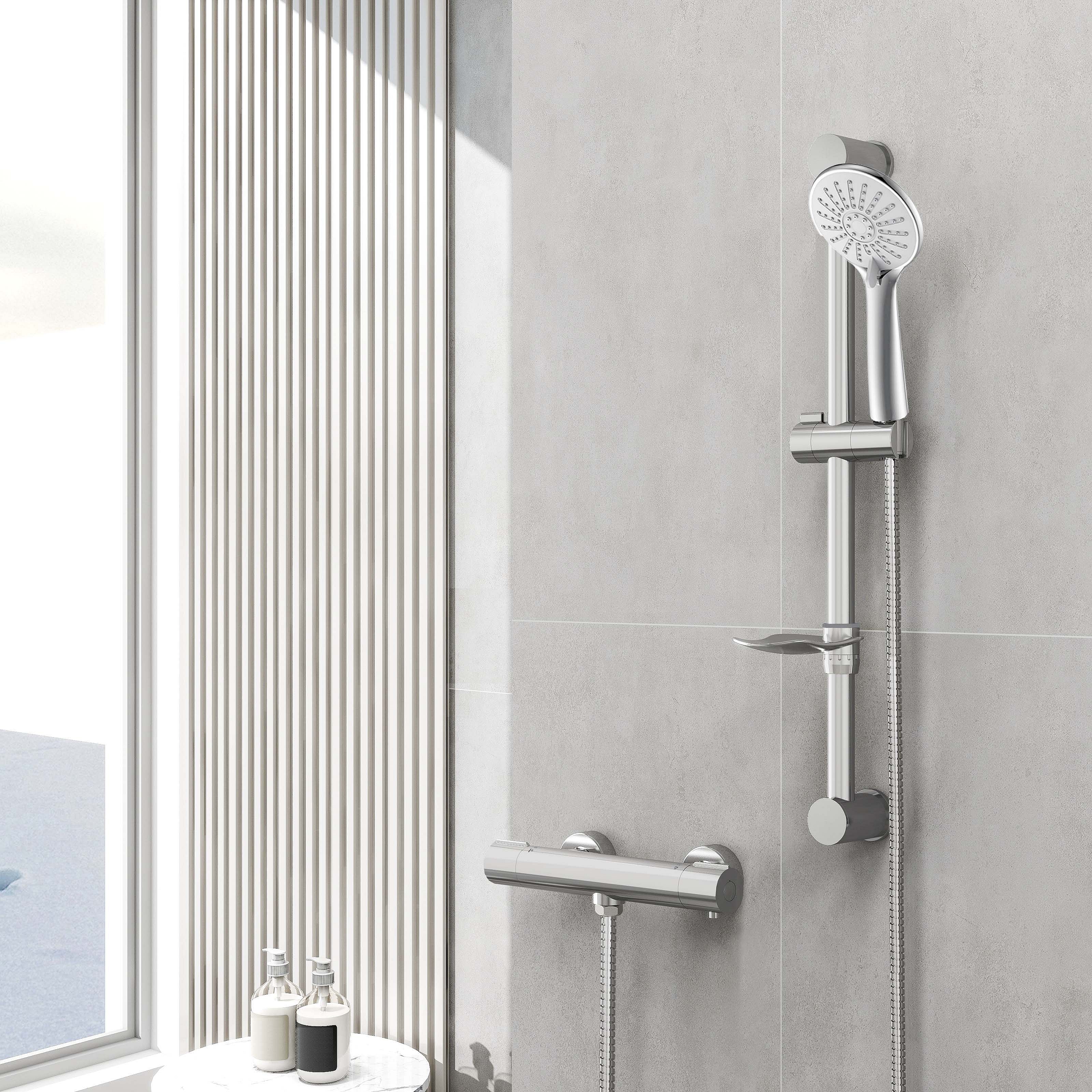 AICA Coluna de duche termostática cromada | Alcachofra Praça Grande | Barra ajustável 73-115 cm | Sistema de duche superior