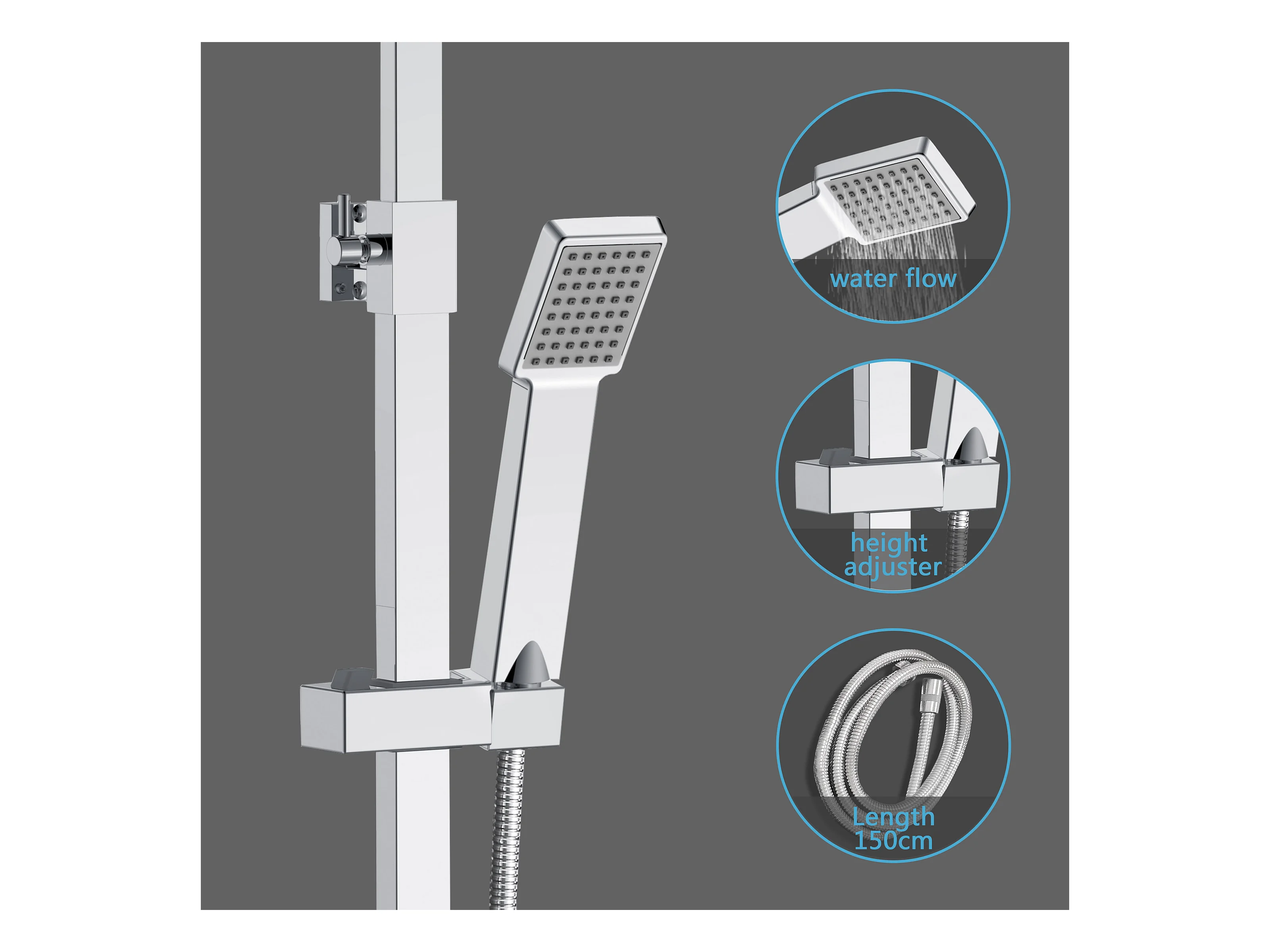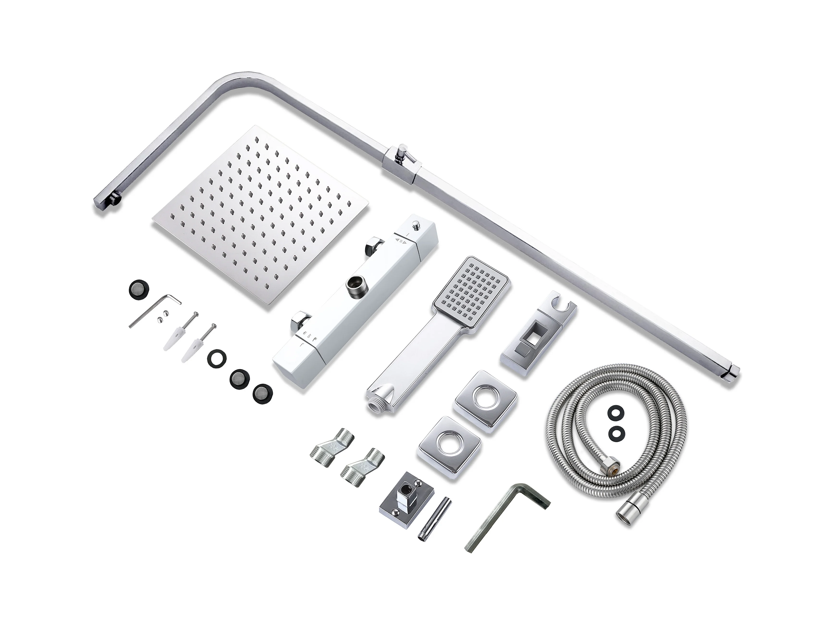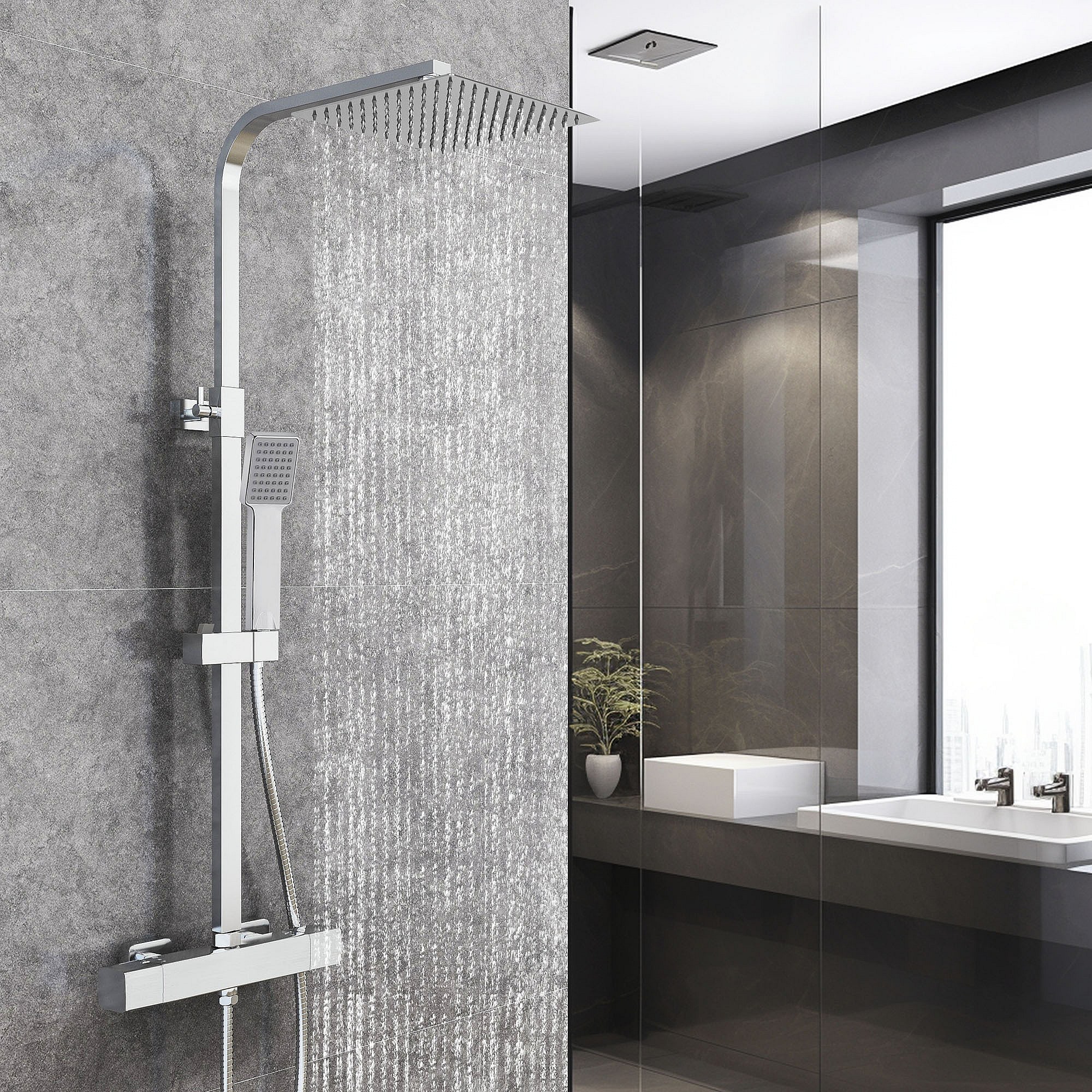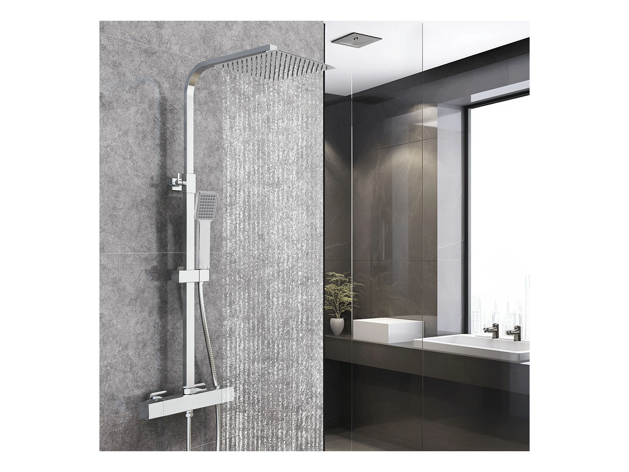 AICA Coluna de chuveiro termostática cromada com cabeça quadrada, aspersor superior e barra ajustável