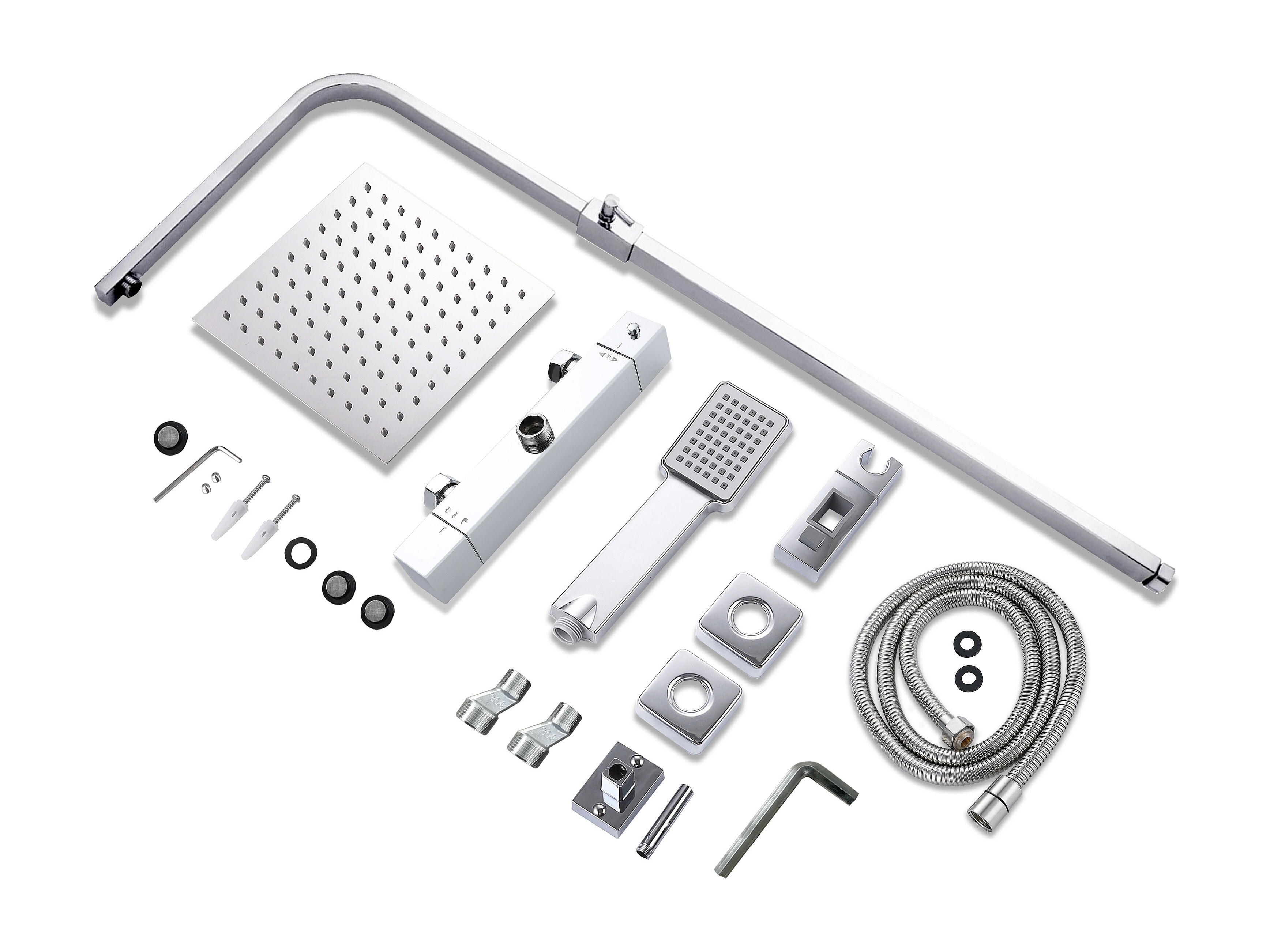 AICA Coluna de chuveiro termostática cromada, chuveiro quadrado e chuveiro superior grande