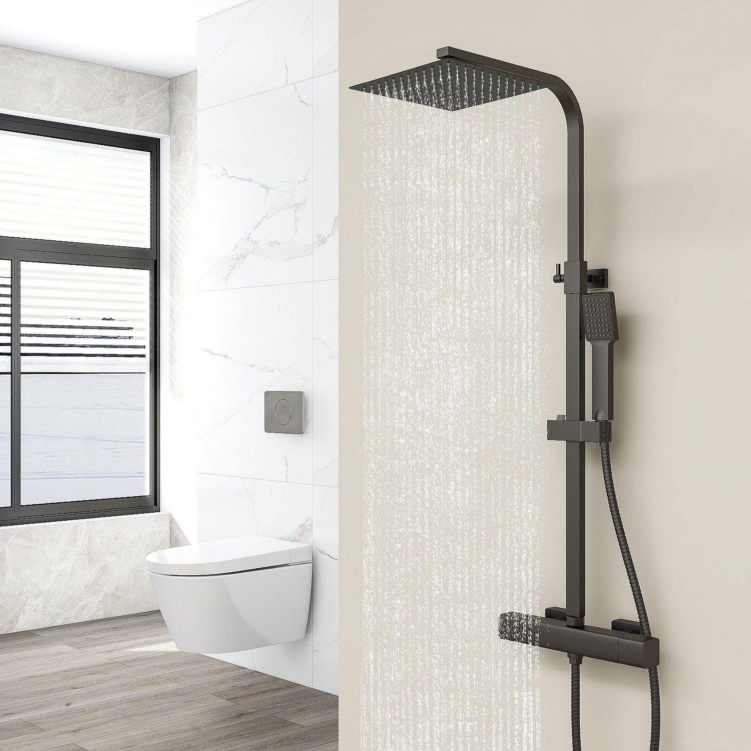 AICA Coluna de duche termostática preto mate | Alcachofra Praça Grande | Barra ajustável 73-115cm| Sistema de duche superior