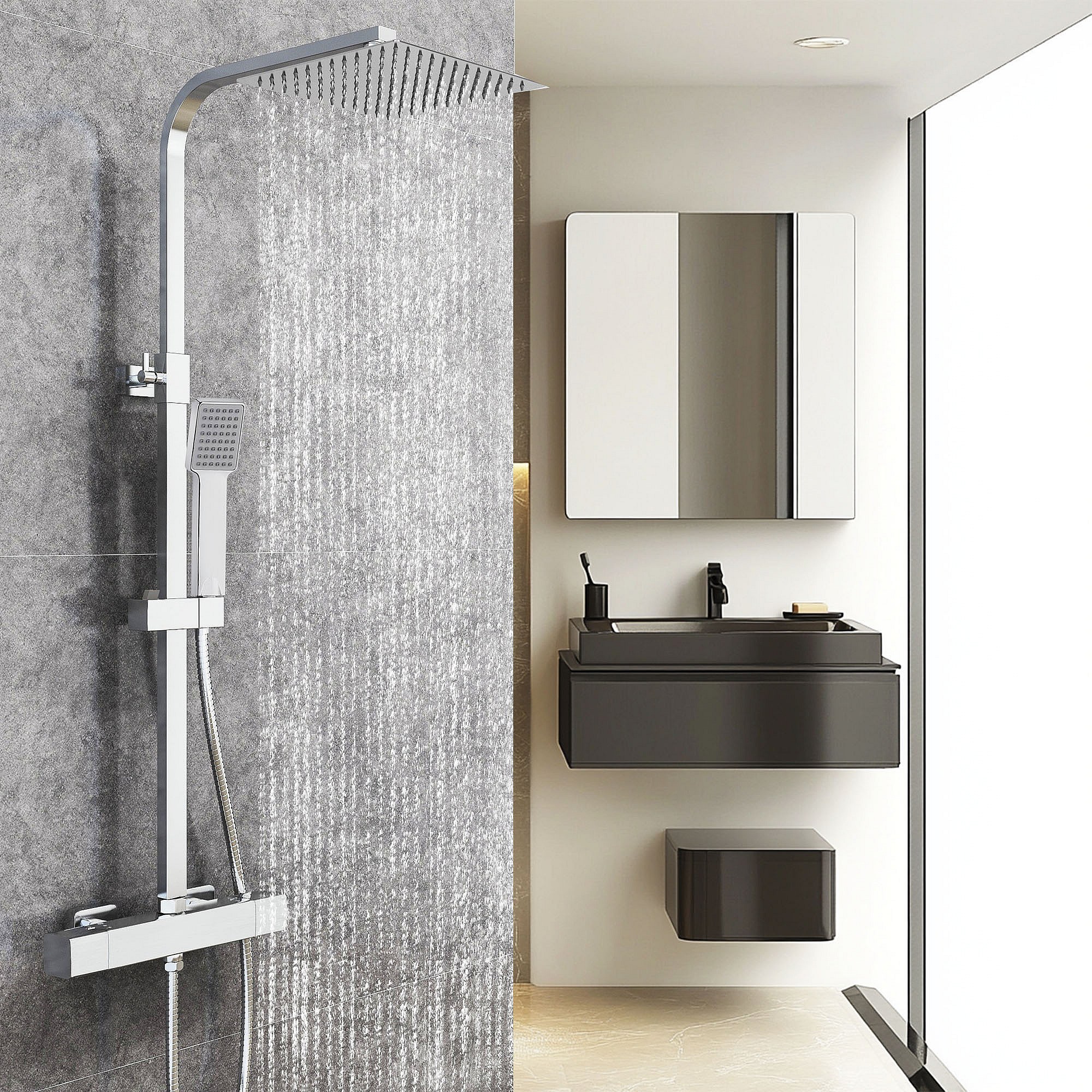 AICA Coluna de chuveiro termostática cromada com cabeça quadrada, aspersor superior e barra ajustável