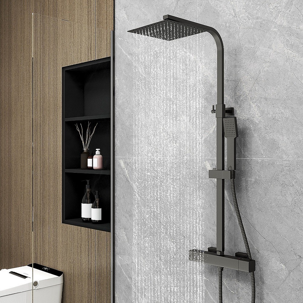 AICA Coluna de duche termostática preto mate | Alcachofra Praça Grande | Barra ajustável 73-115cm| Sistema de duche superior