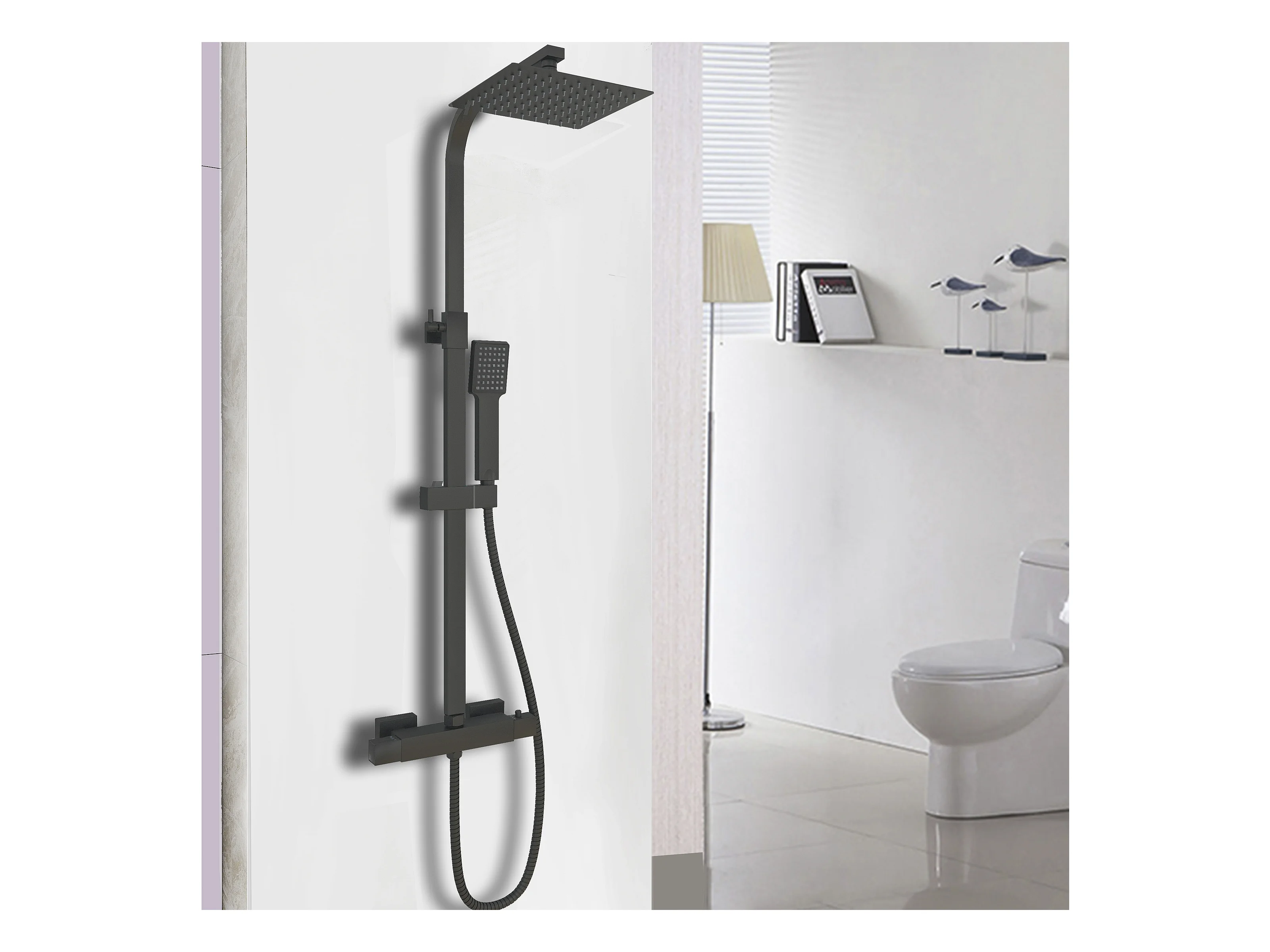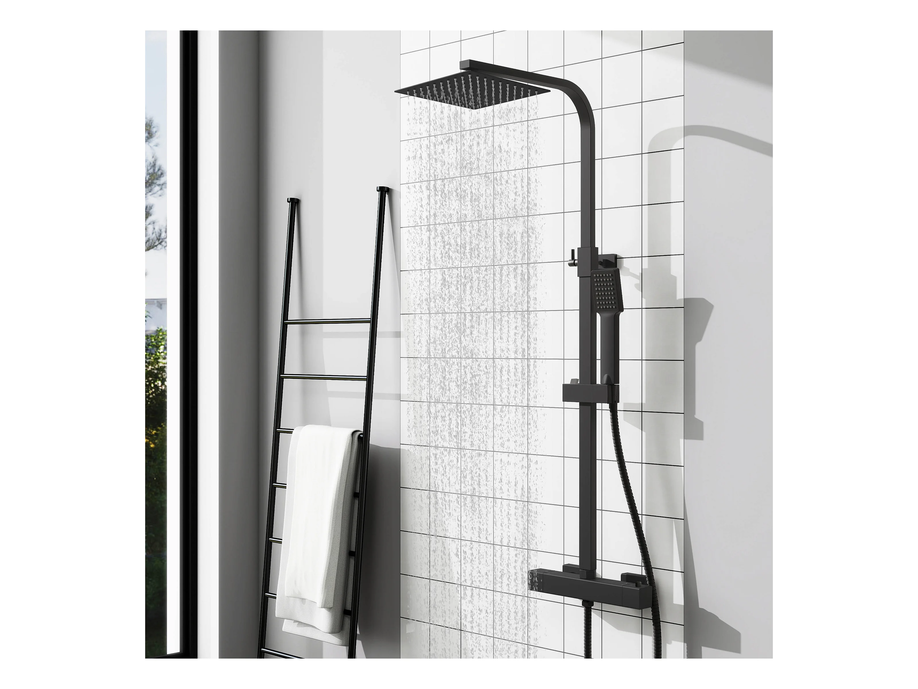 Coluna de Chuveiro Termostática AICA Preta Mate Ajustável com Chuveiro de Mão e Chuveiro Superior Grande Quadrado