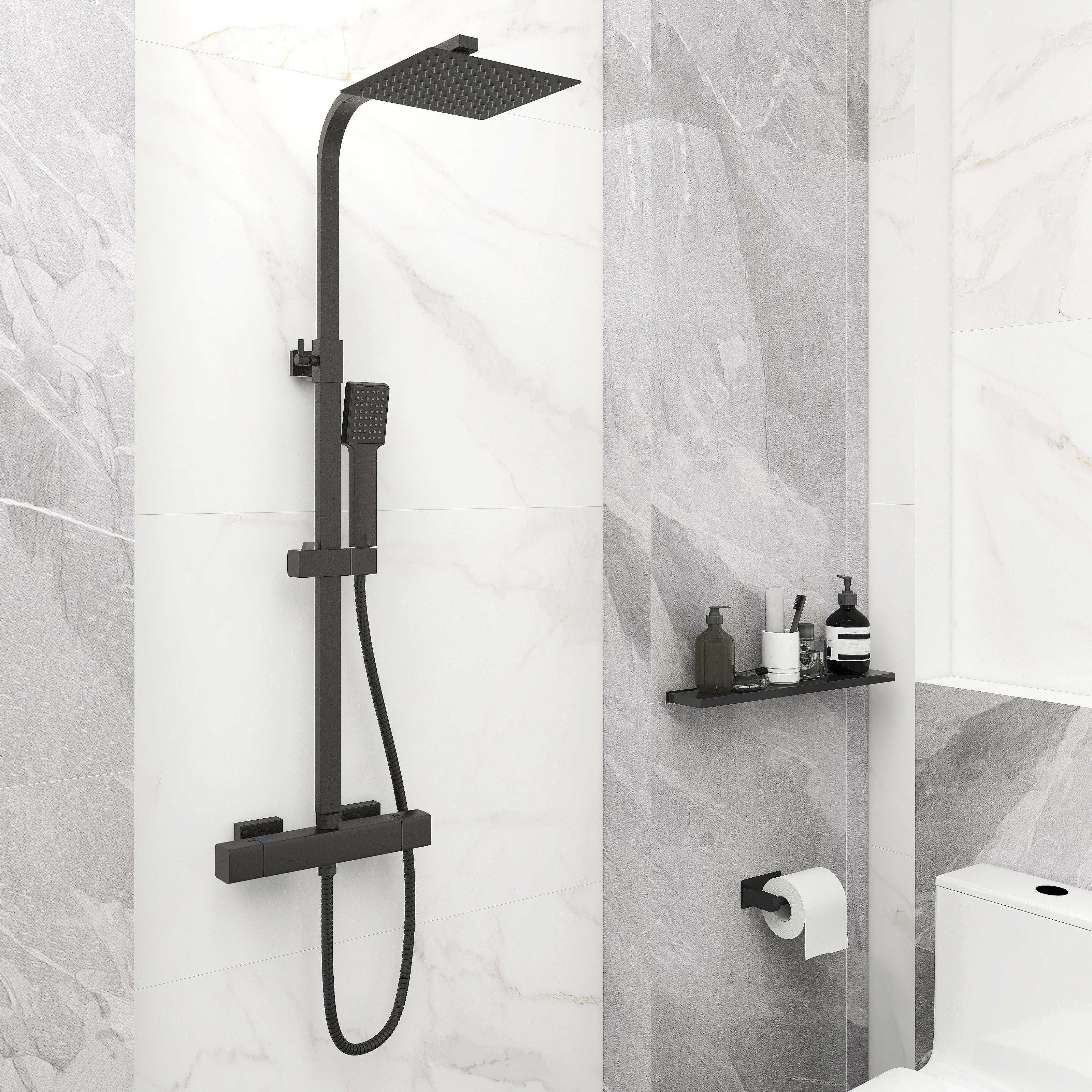 Coluna de chuveiro termostática Aica quadrada preta fosca 764-1184mm para banheiro