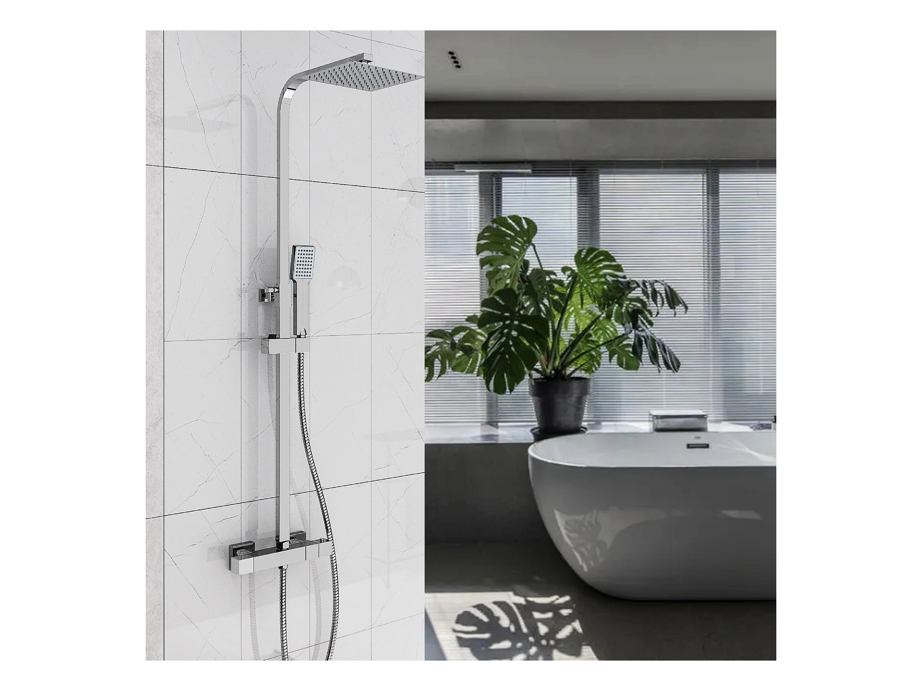 Coluna de chuveiro termostático quadrado Aica 764-1184mm para banheira