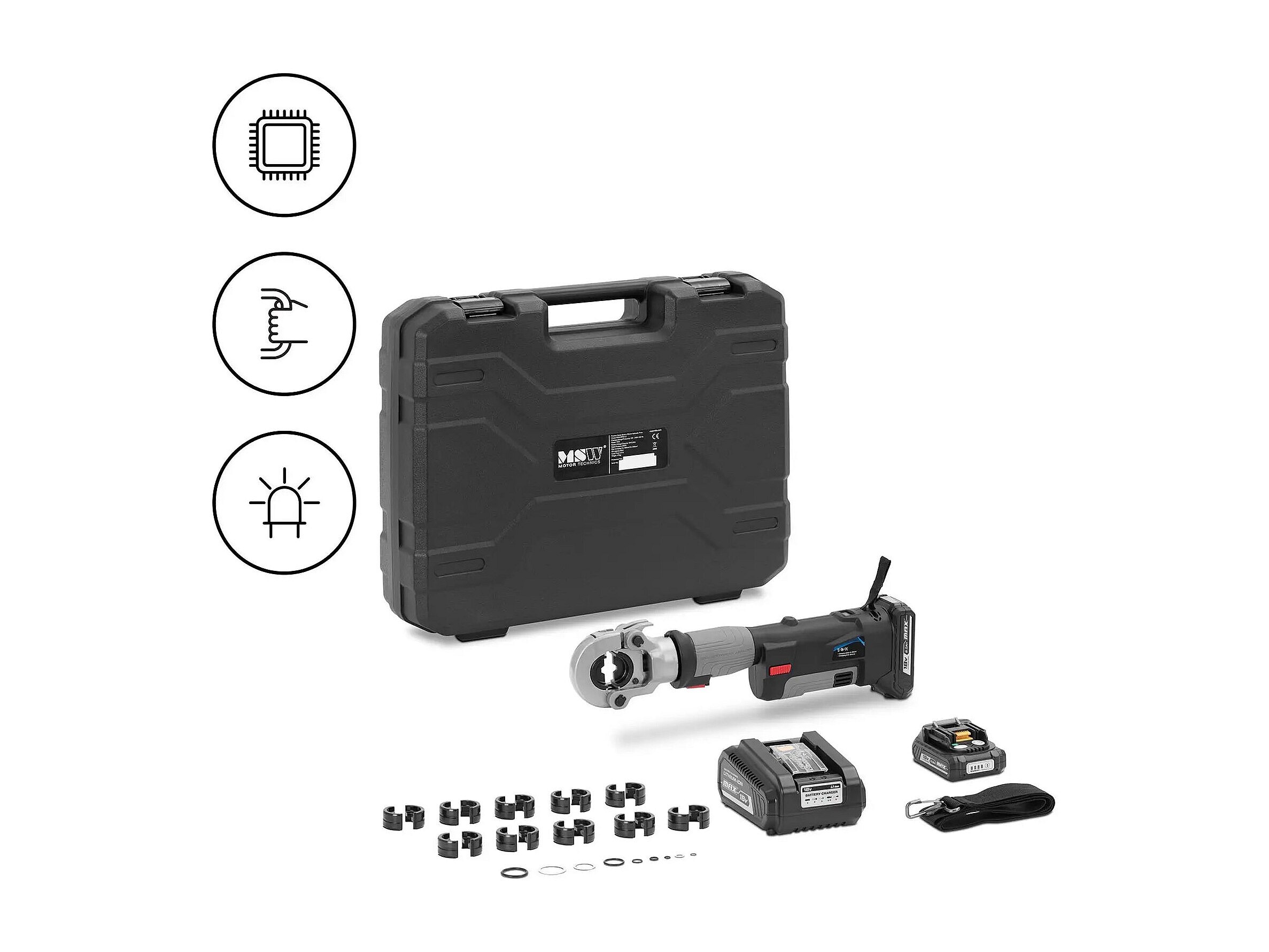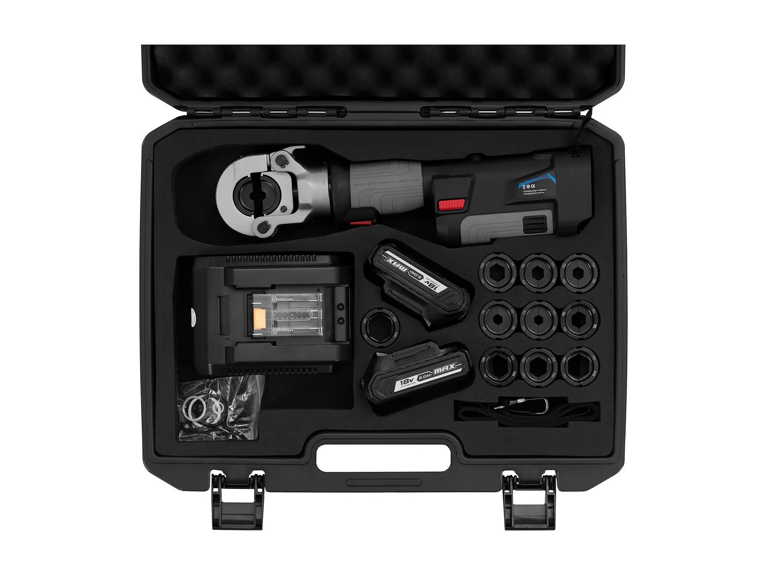 Alicate de crimpagem hidráulico 16 a 300 mm² prensagem hexagonal 60 kn borracha plástico aço preto cinza 14_0009497