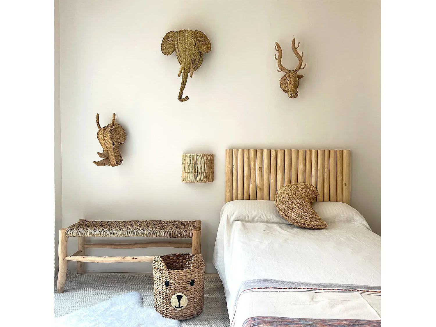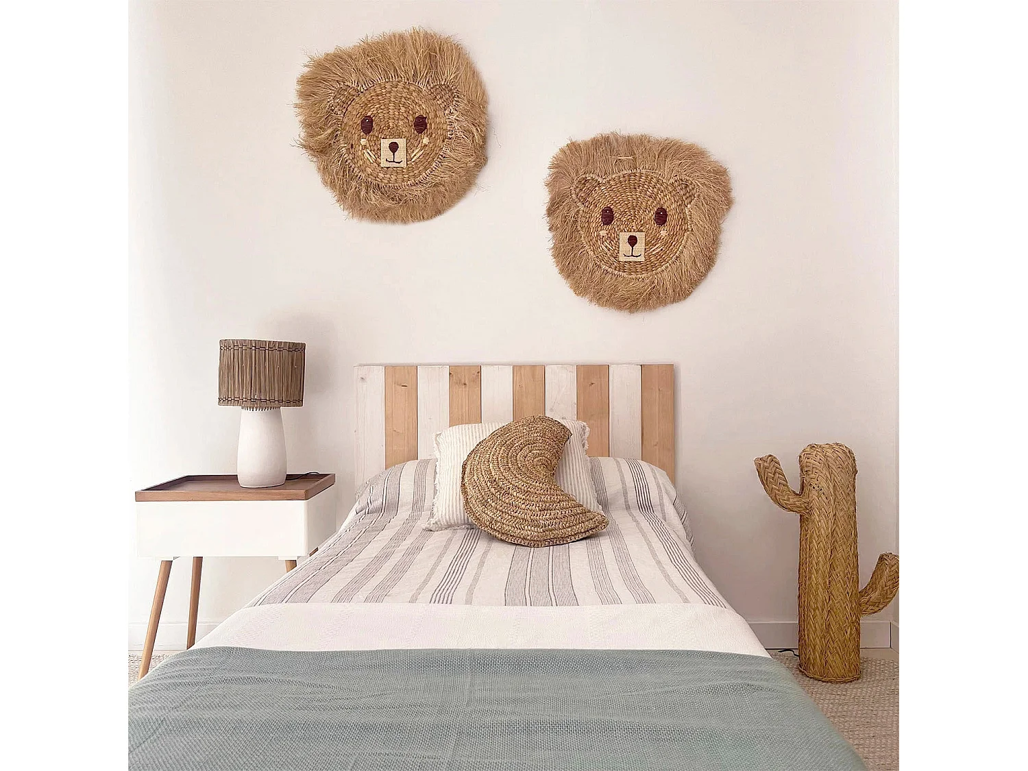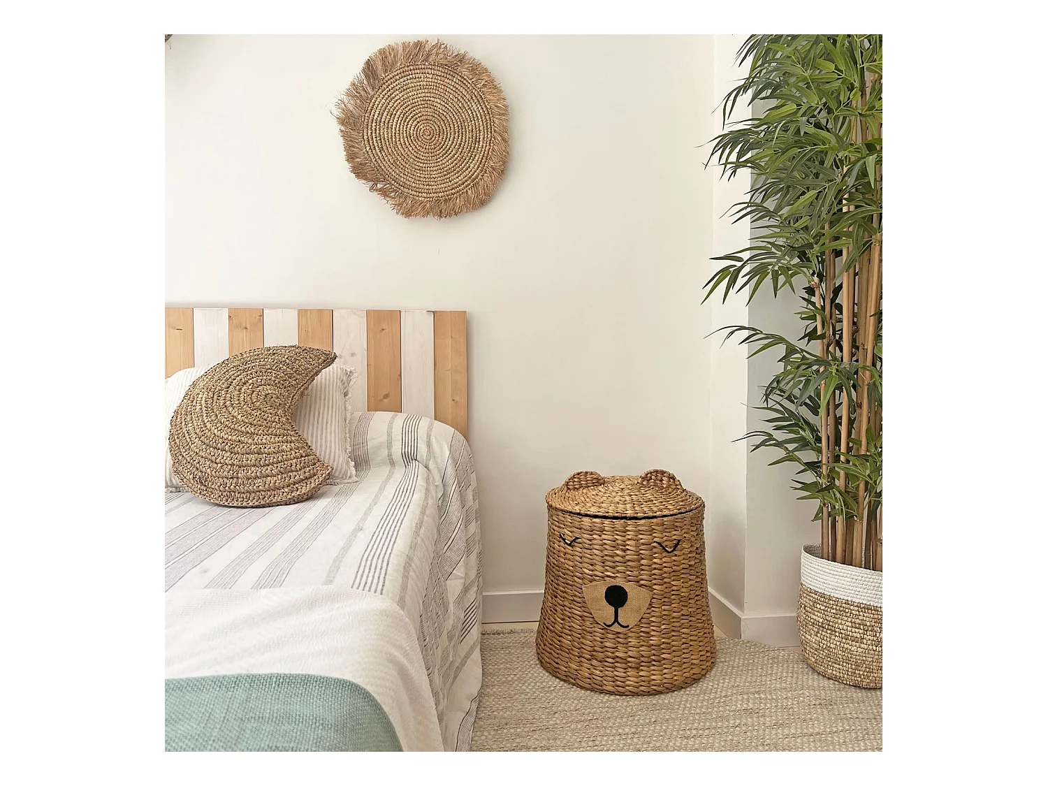 Almofada de ráfia natural para crianças com forma de lua 45x30cm