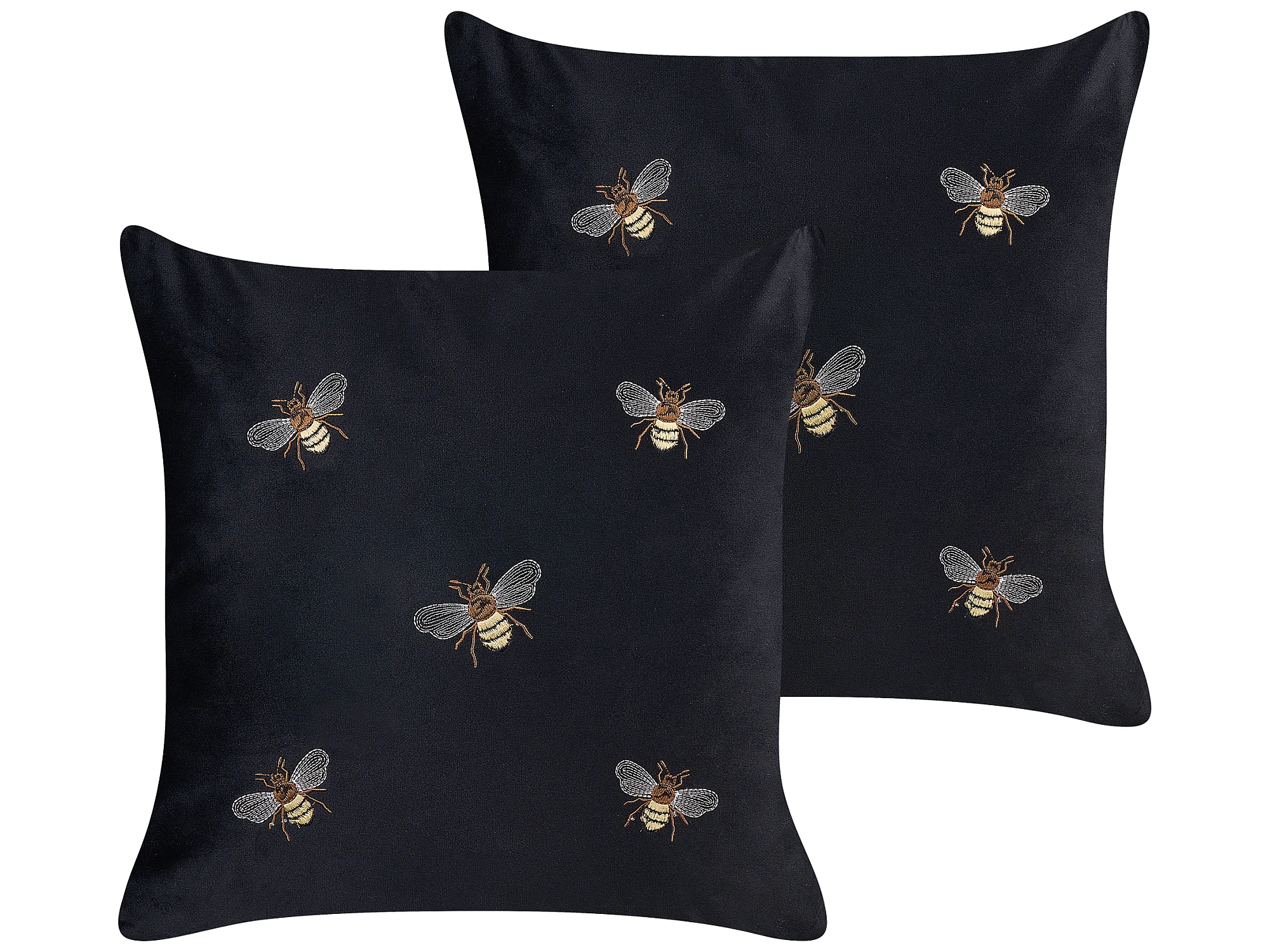 Conjunto de 2 almofadas decorativas YUZURI Veludo 45 x 45 cm Preto Padrão animal