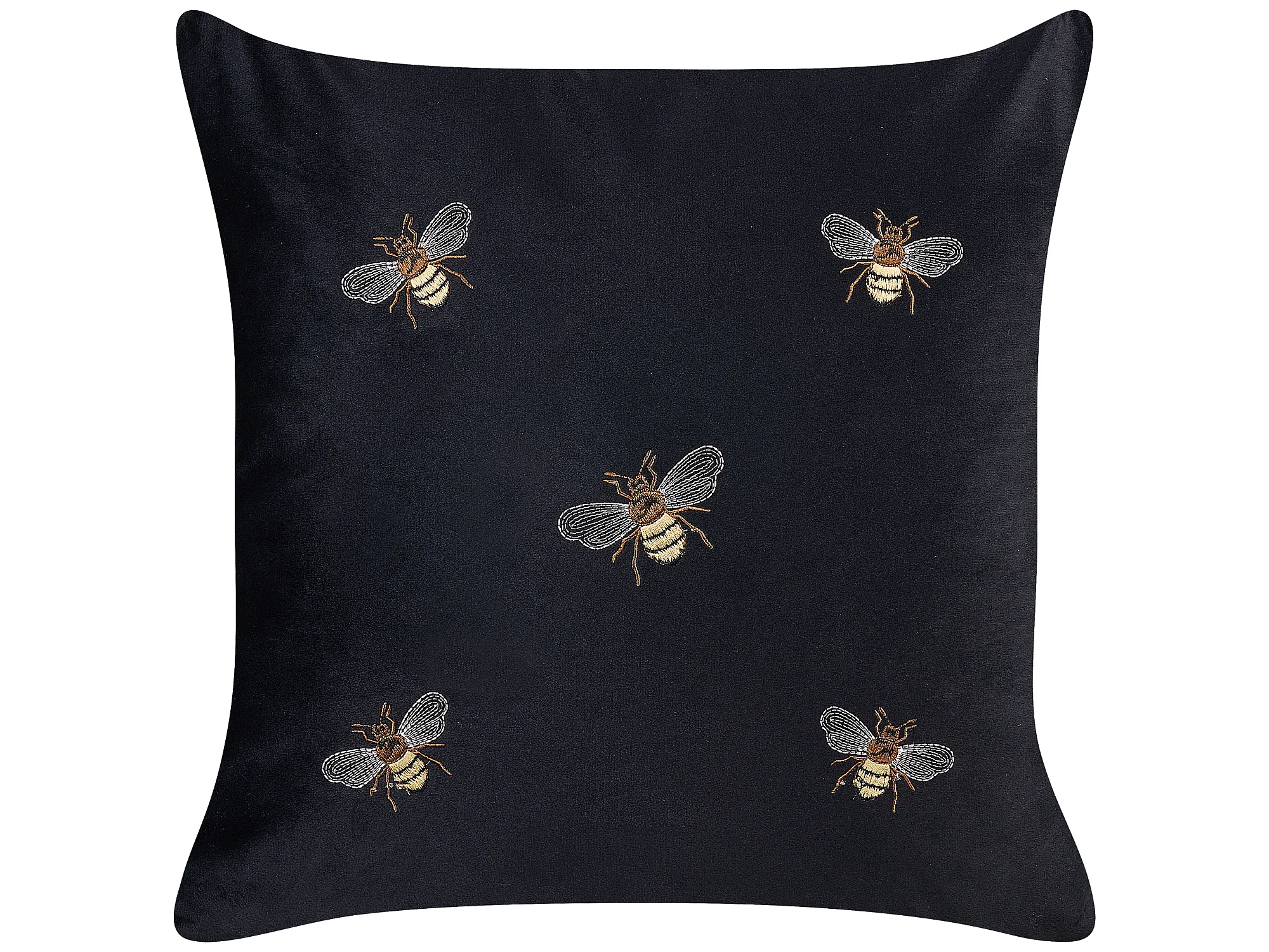 Almofada decorativa RICINUS Veludo 45 x 45 cm Preto Padrão oriental