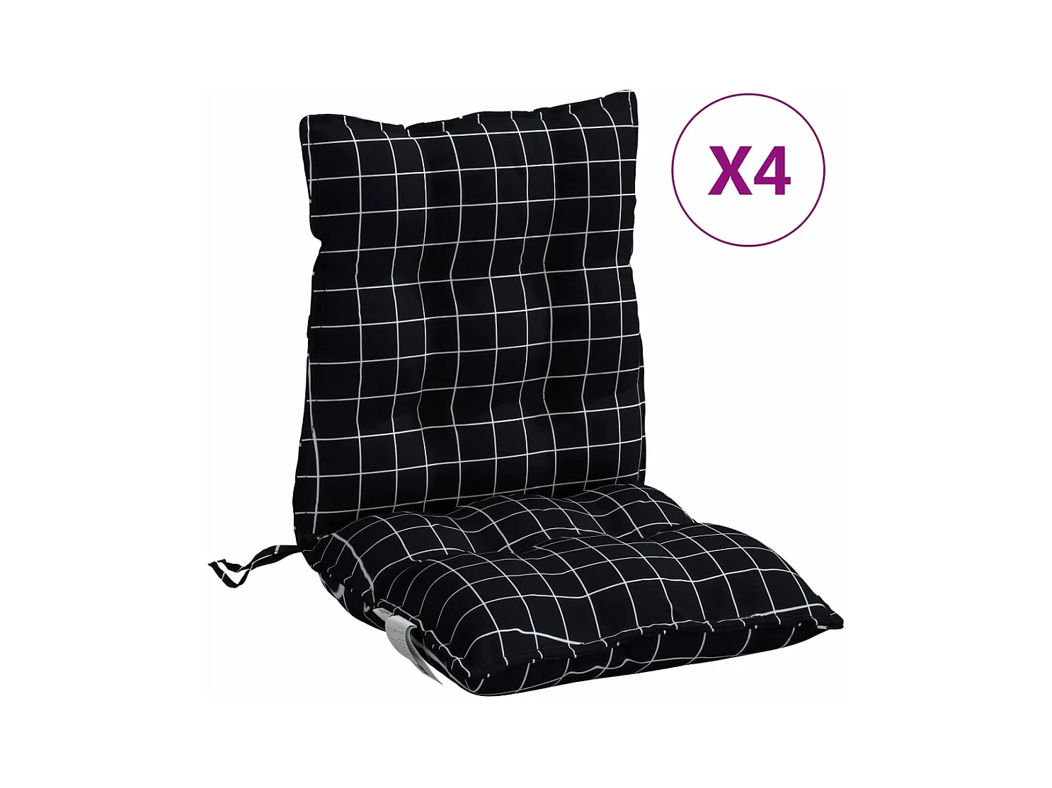 Almofadões cadeira encosto baixo 4 peças oxford xadrez preto