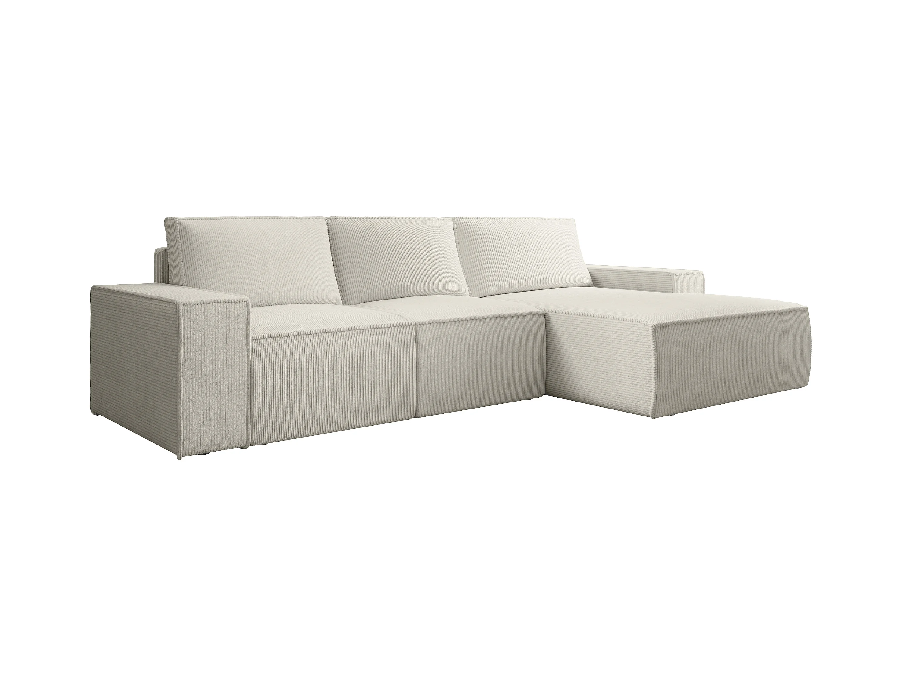 Grande sofá de canto direito convertível em veludo canelado bege - AMELIA