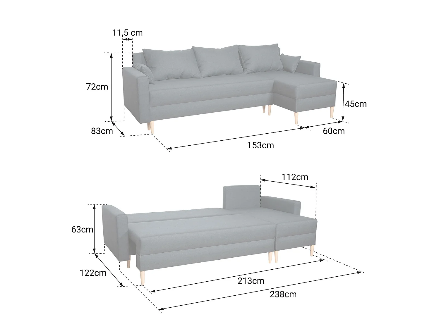 ANTONI 3 lugares sofá-cama de canto azul escuro