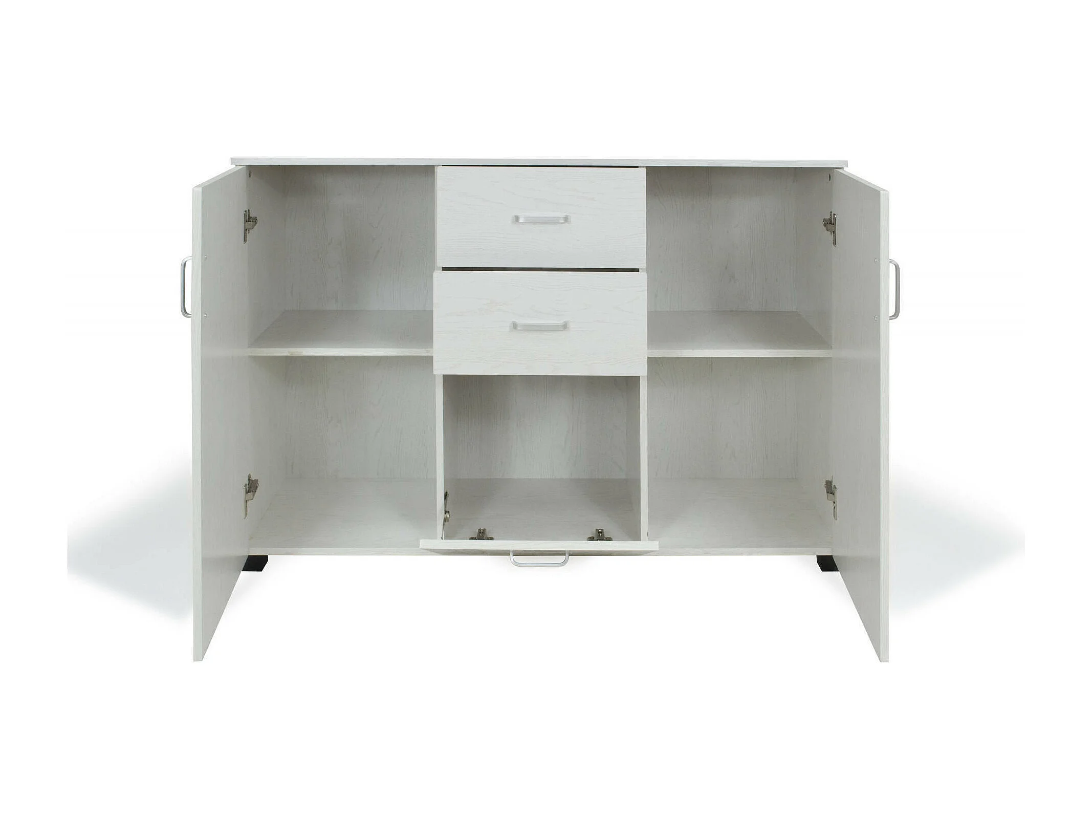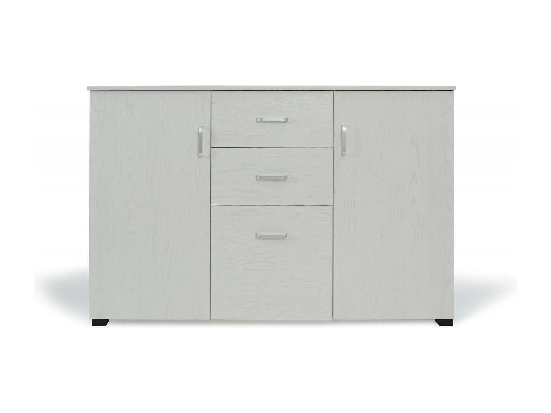 Aparador 0, Buffet moderno com 3 portas e 2 gavetas, Aparador linear com prateleiras, Fabricado em Itália, 120x40h83 cm, Carvalho branqueado