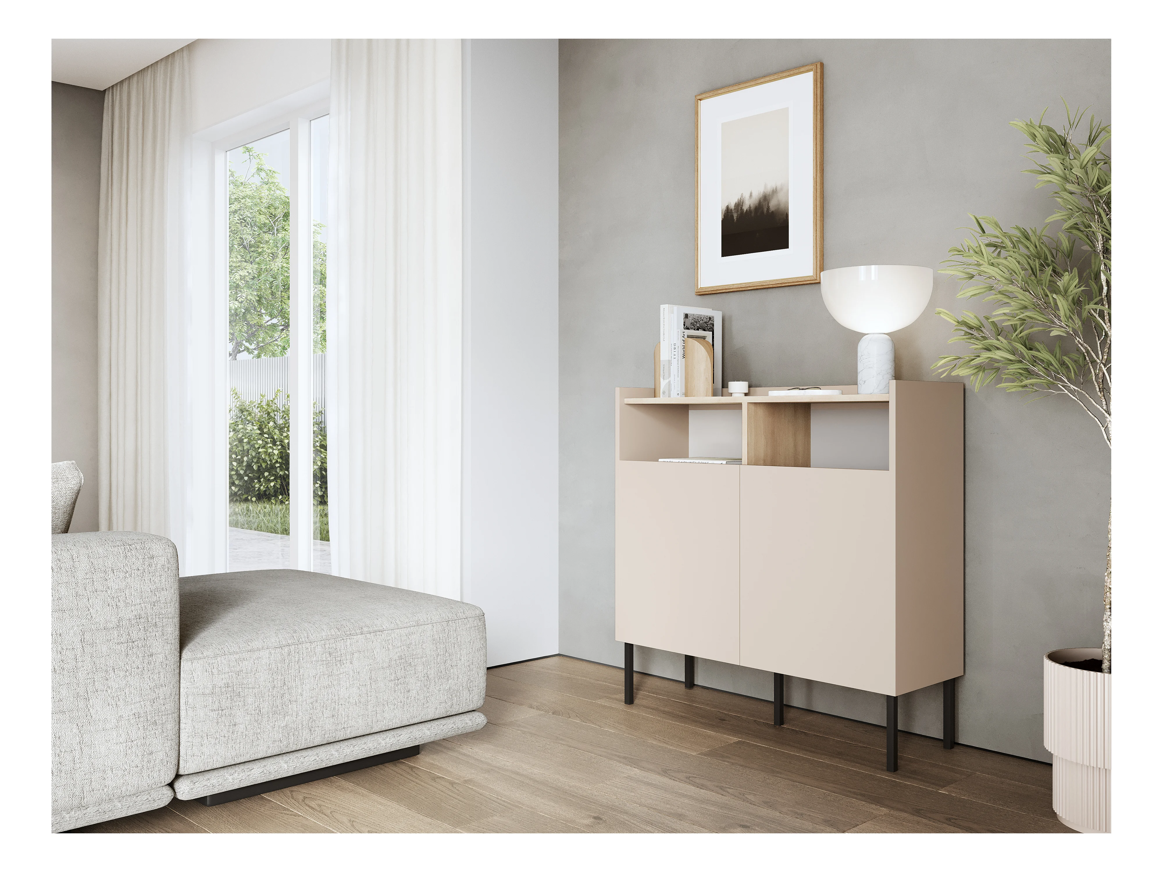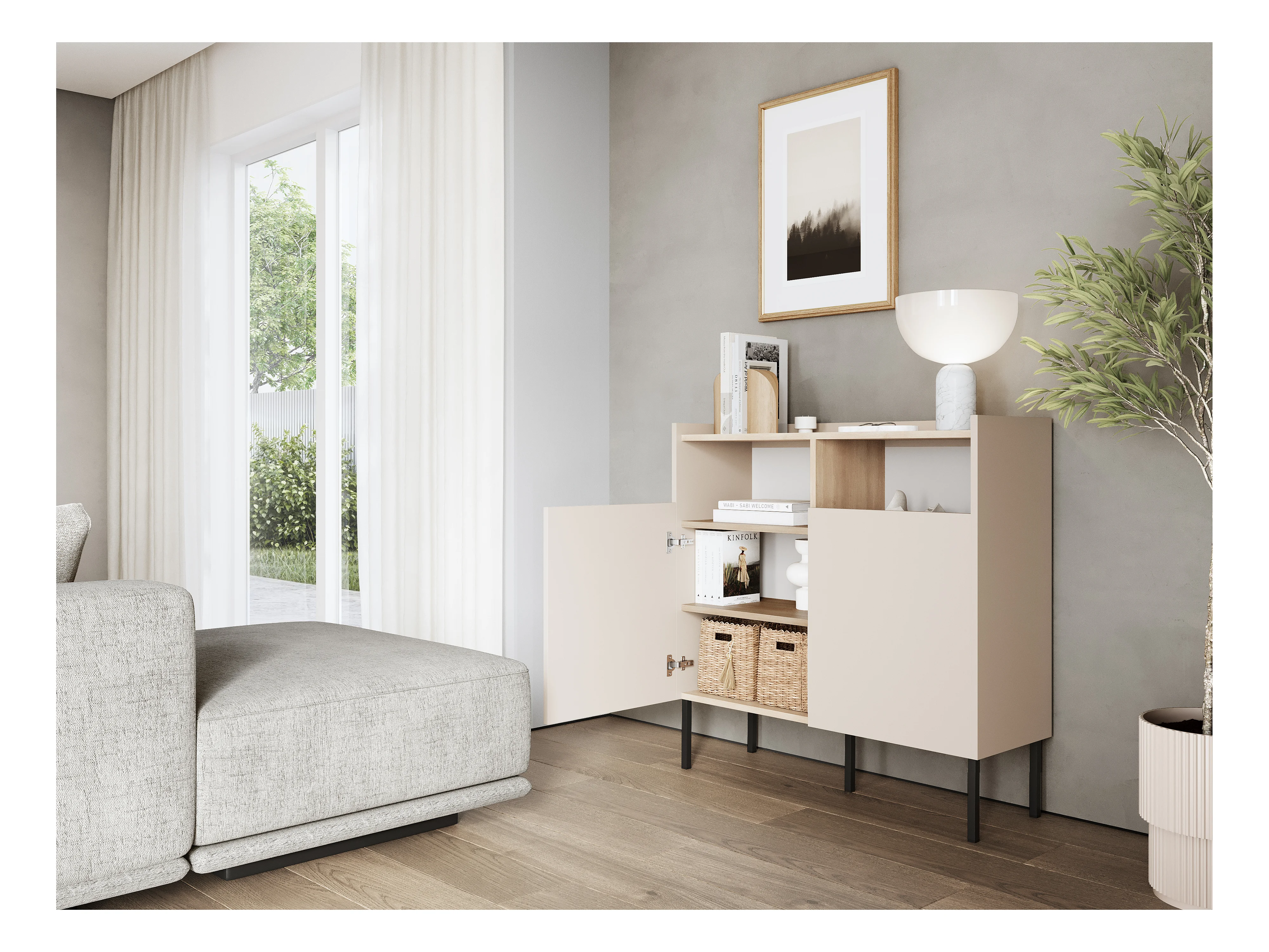 Aparador 100 x 35 x 100 cm – Móvel com portas, pés de metal, acabamento mate para sala de estar