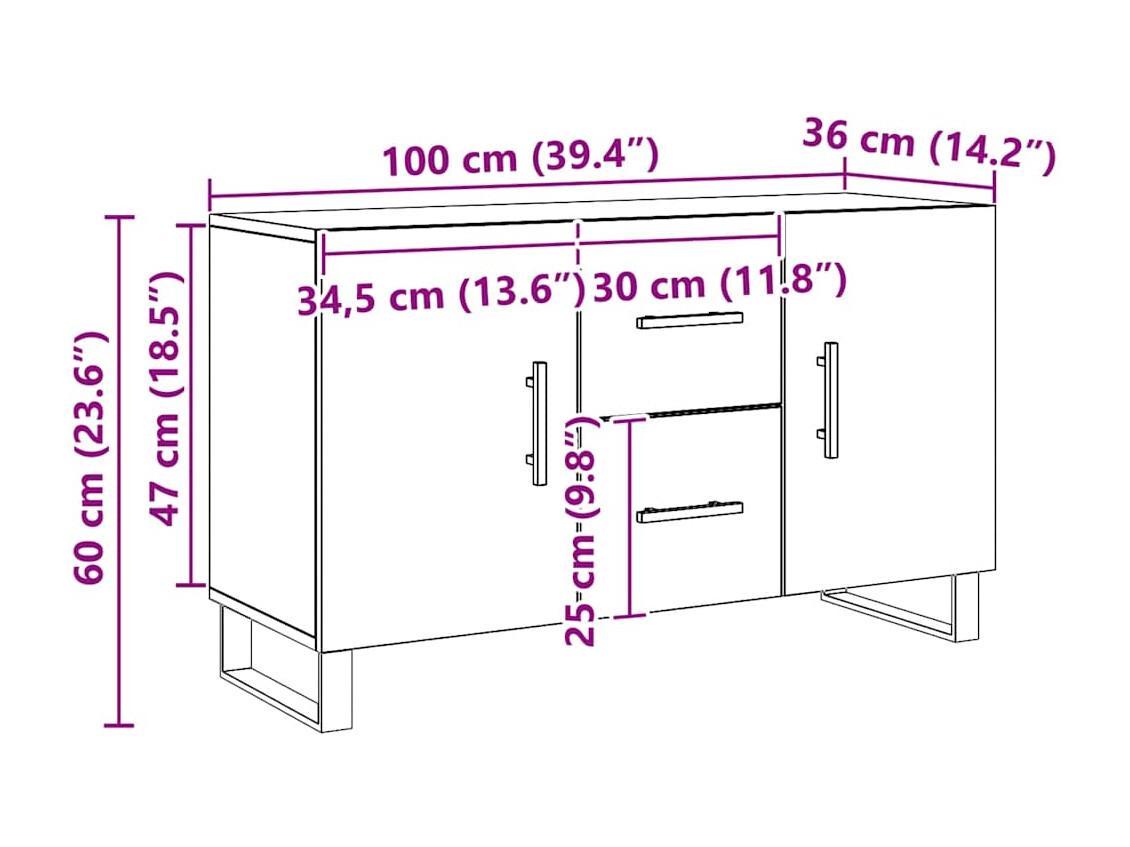 Aparador 100x36x60 cm derivados de madeira carvalho fumado