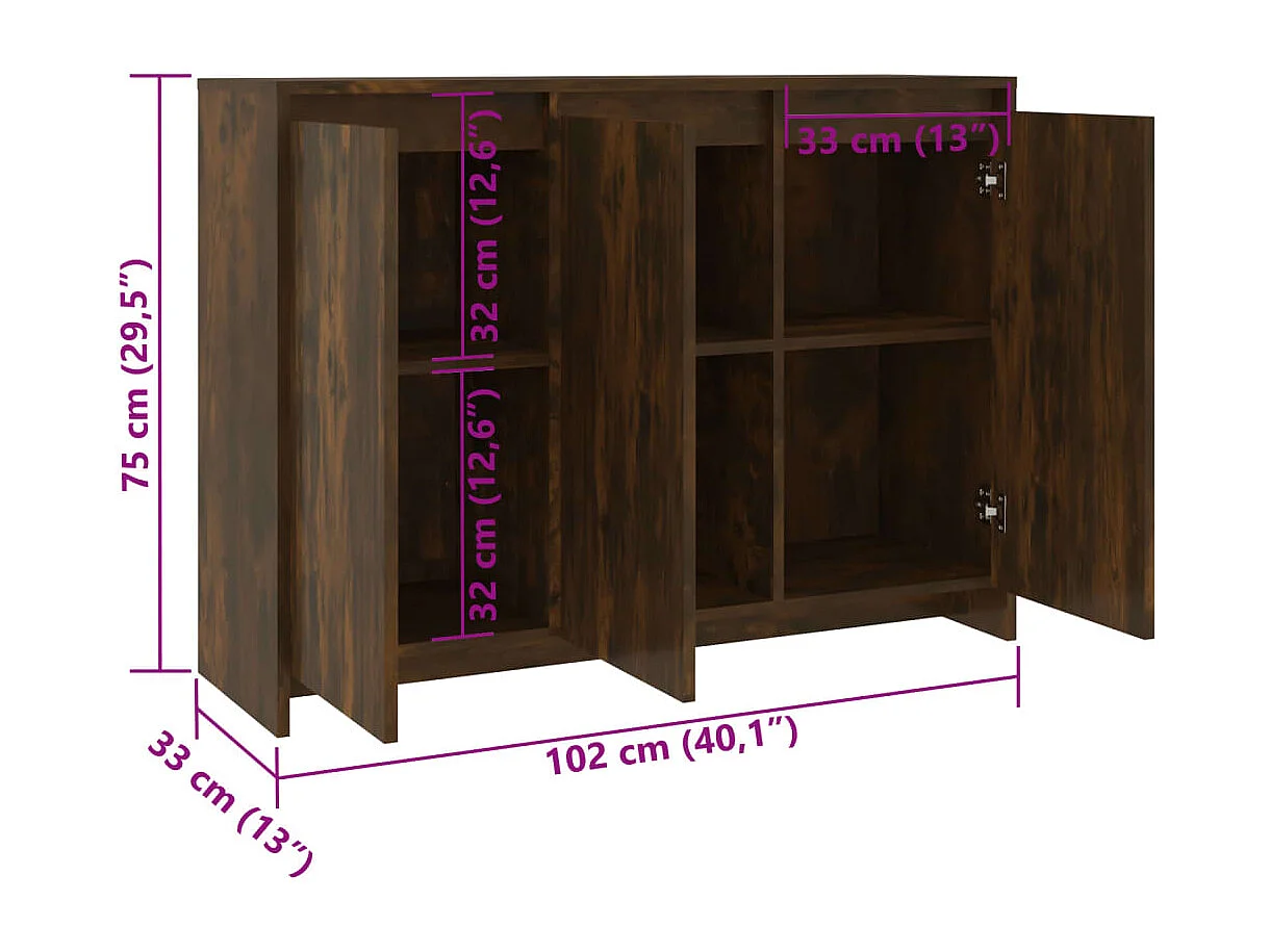 Aparador 102x33x75 cm derivados de madeira carvalho fumado