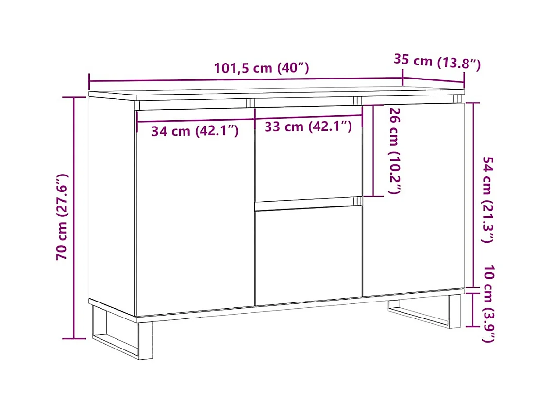 Aparador 101,5x35x70 cm derivados de madeira carvalho sonoma