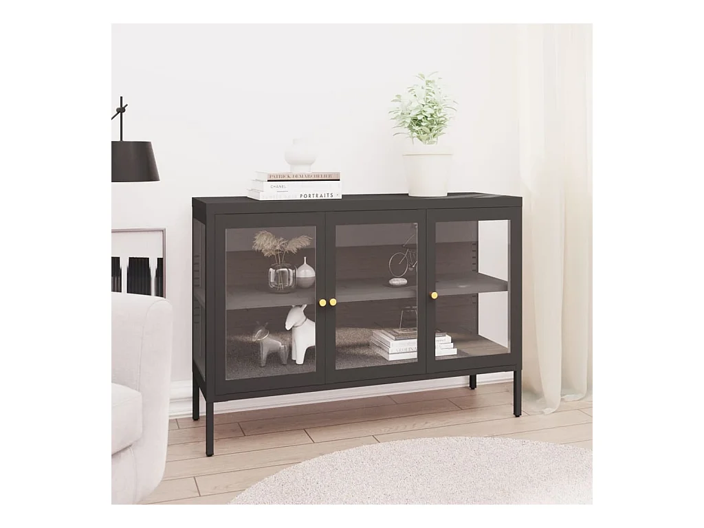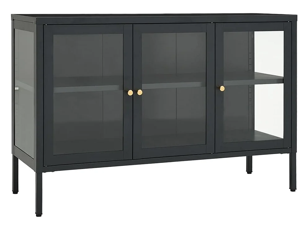 Aparador cômoda armário organizador de unidade cozinha sala sala 105 x 35 x 70 cm aço e vidro antracite 02_0029690