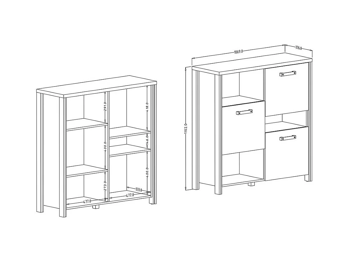 Aparador 110cm com 2 gavetas coleção WINDSOR. Cores cinza antracite e carvalho escuro.