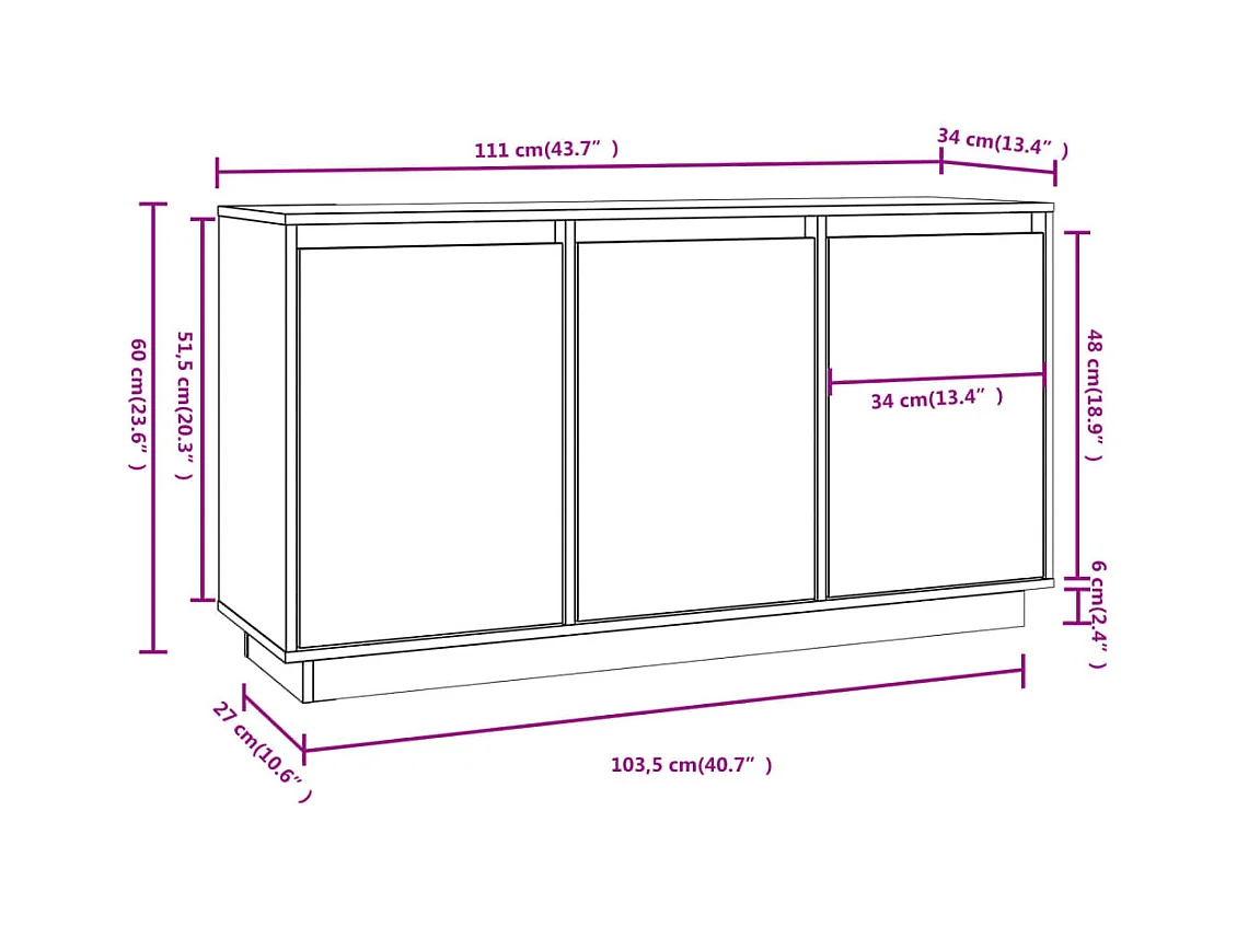 Aparador 31,5x34x75 cm madeira de pinho maciça