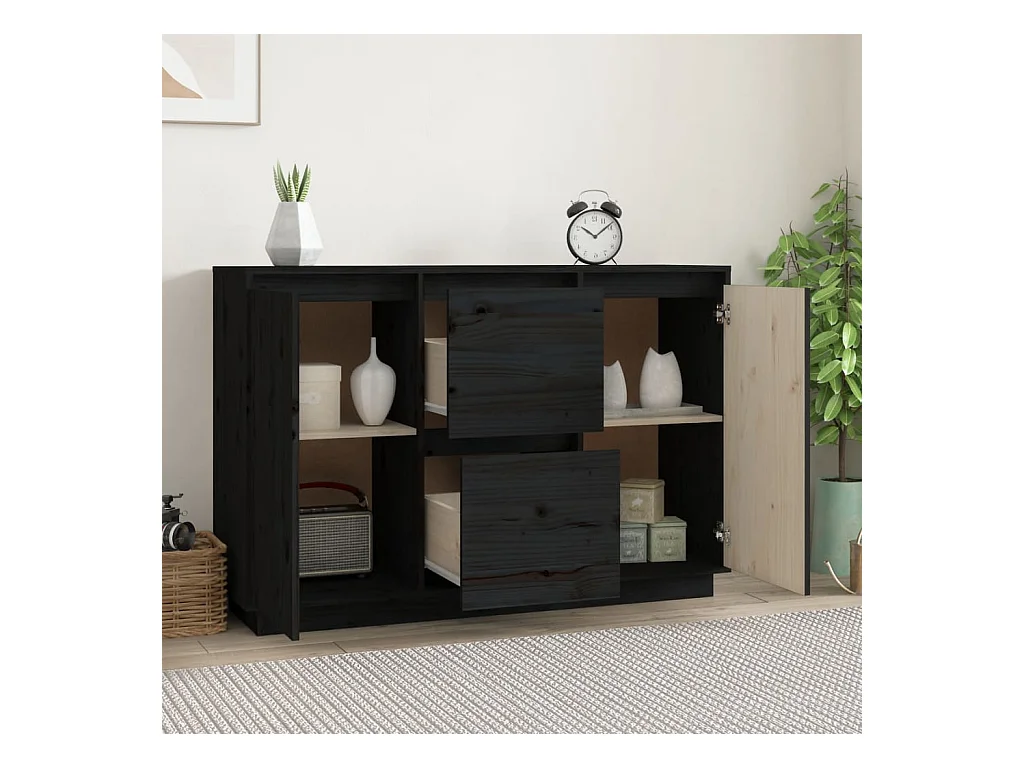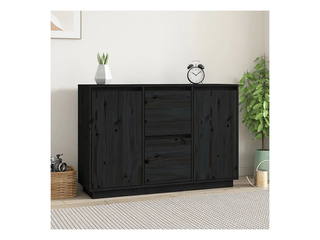 Aparador 111x34x75 cm madeira de pinho maciça preto PT225328