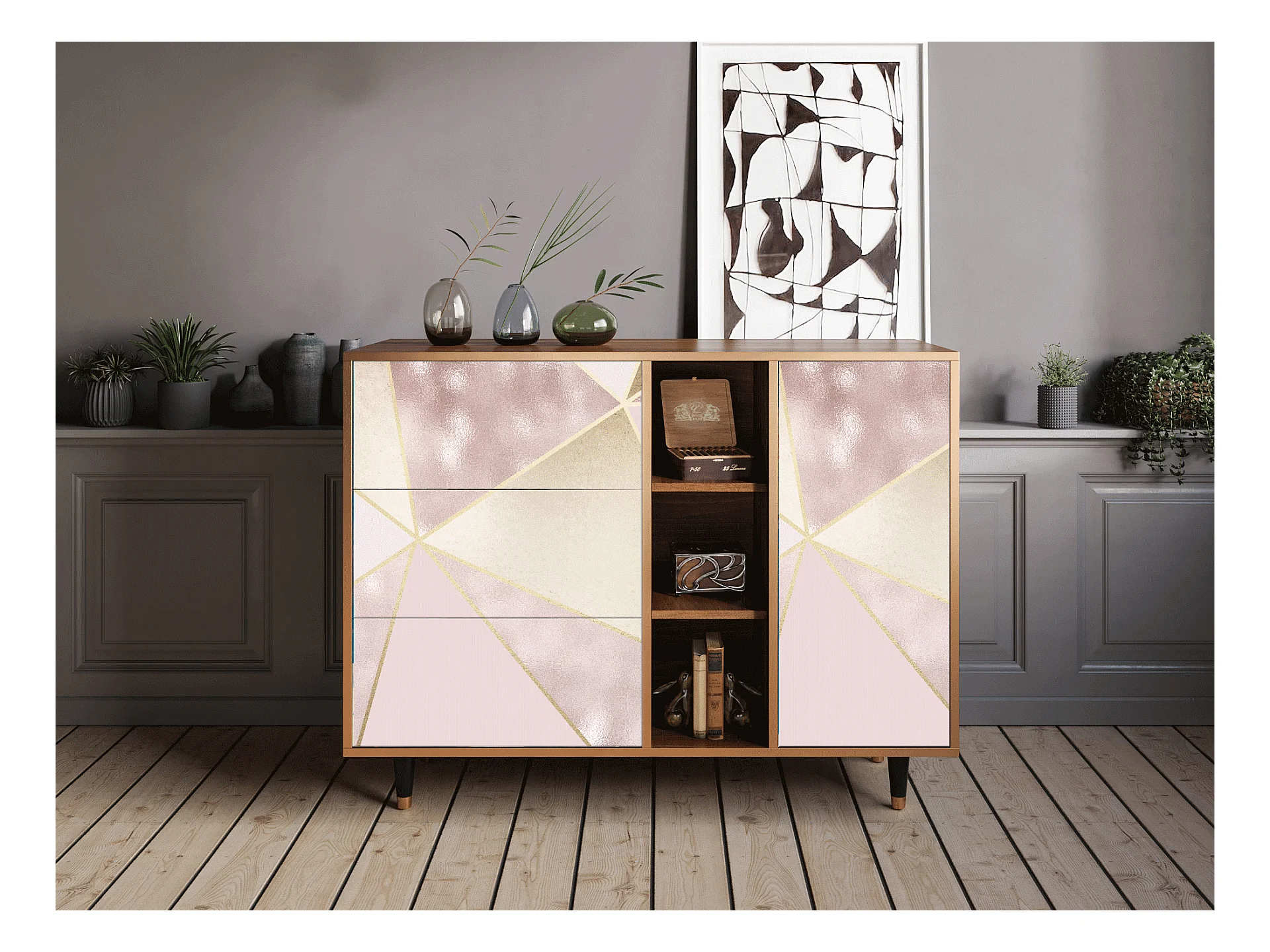 Aparador - 125x98x48 cm - BS2 - Geometric Madness, Nogueira