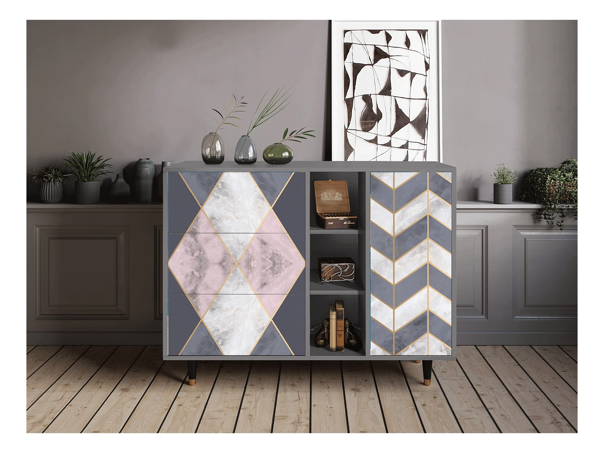Aparador - 125x98x48 cm - BS2 - Egypt Triangles, Antracite