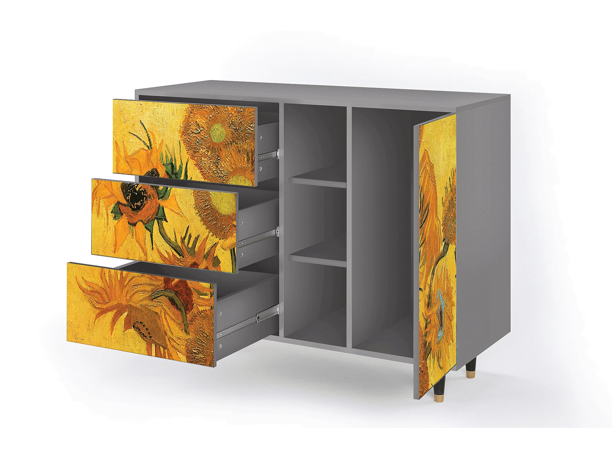 Aparador - 125x98x48 cm - BS2 - Sunflowers, Cinza