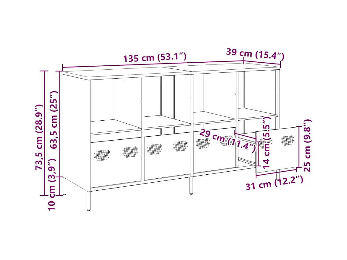 Aparador 135x39x103,5 cm aço laminado a frio branco