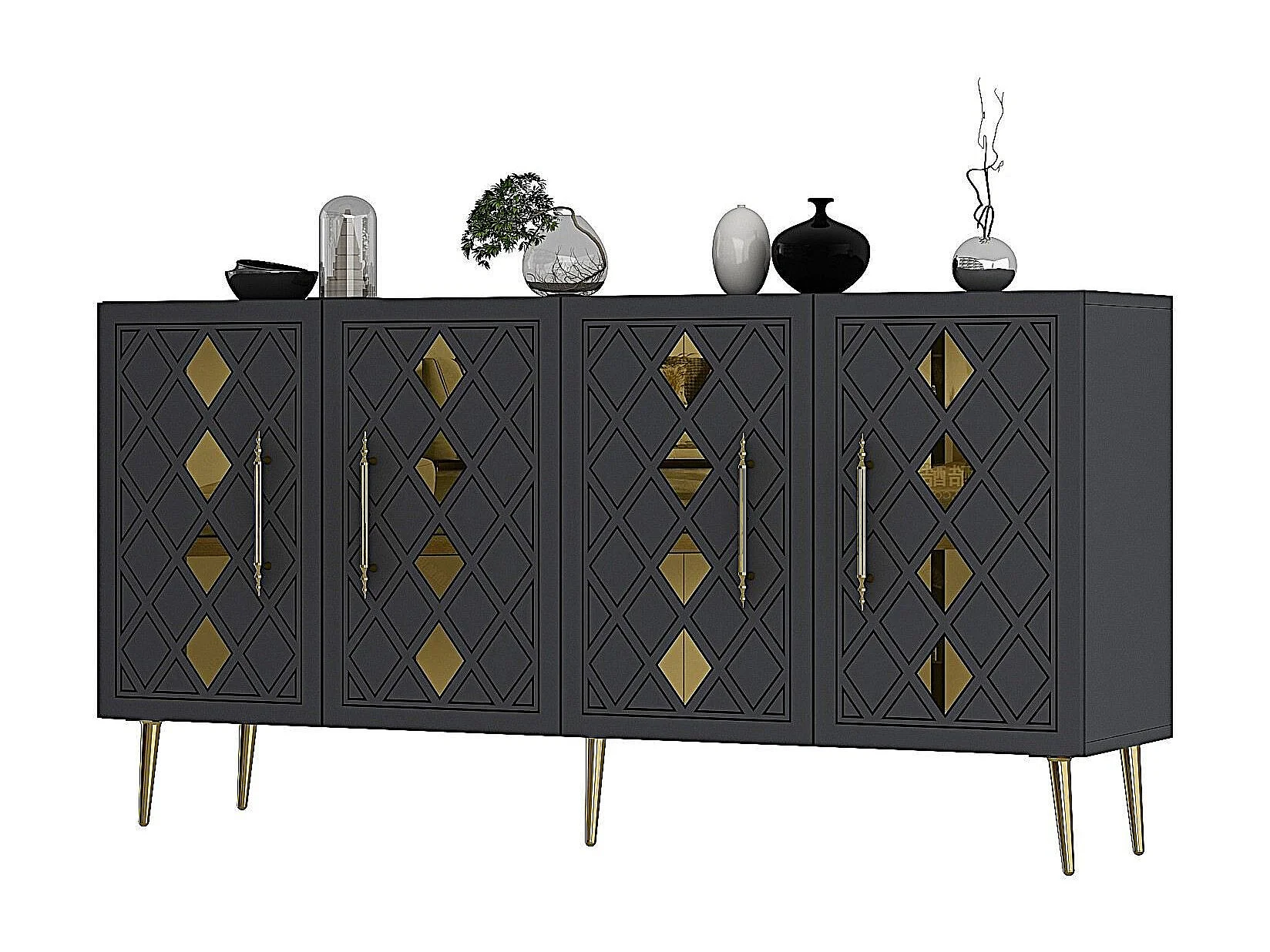 Aparador – 150 cm – Antracite/Dourado – Painéis de partículas revestidos a melamina