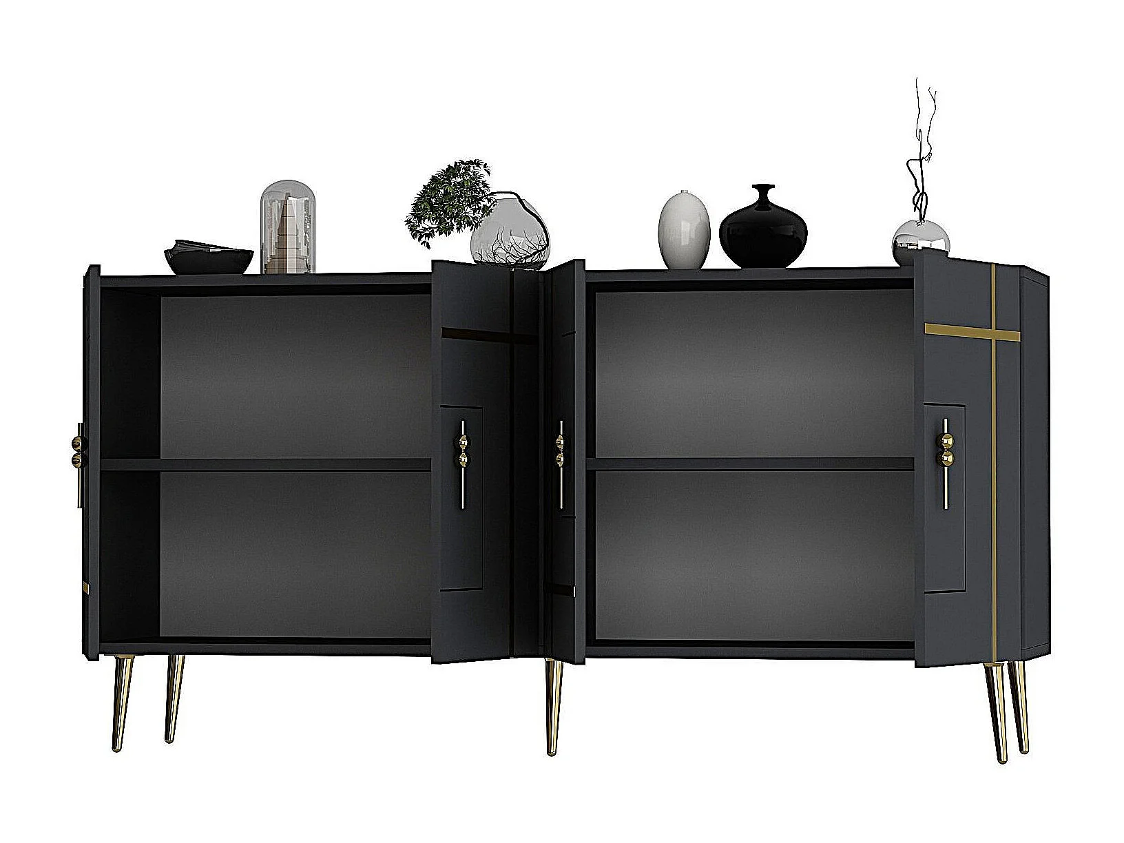 Aparador – 150 cm – Antracite e Dourado – Melamina