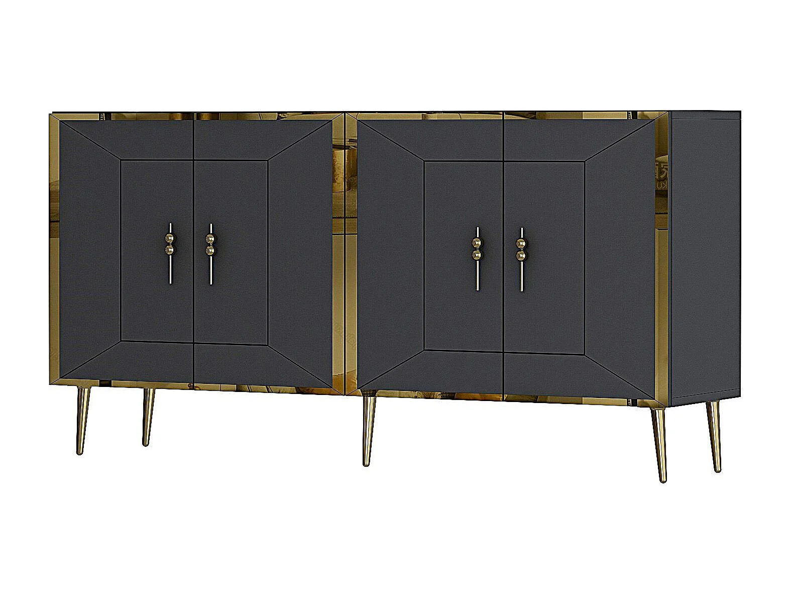 Aparador – 150 cm – Antracite e Dourado – Painel de partículas revestido a melamina