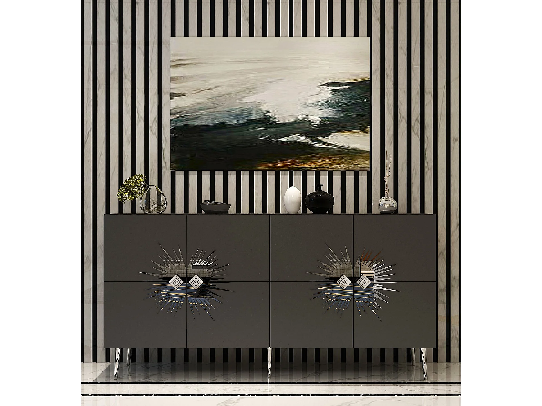 Aparador – 120cm x 30cm – Antracite e Mármore