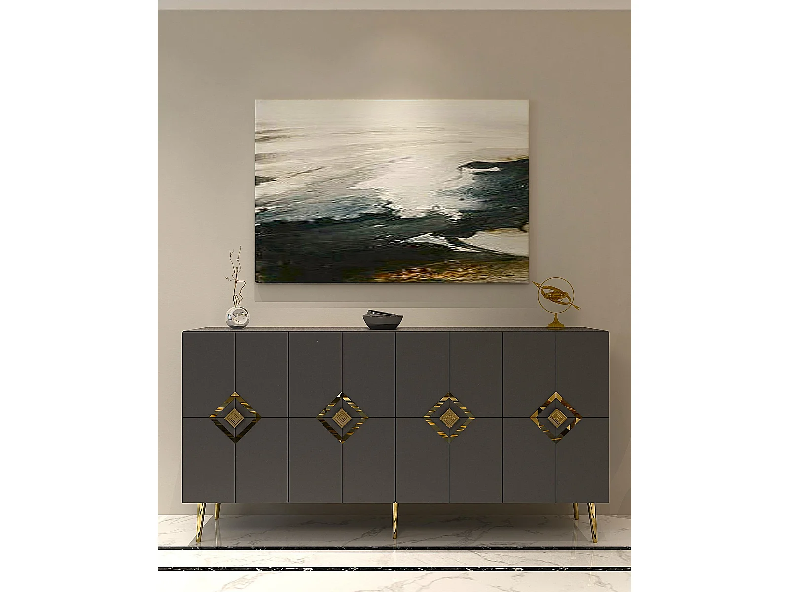 Aparador – 150 cm x 75 cm x 35 cm – Antracite e Ouro – Painel de Partículas Revestido em Melamina