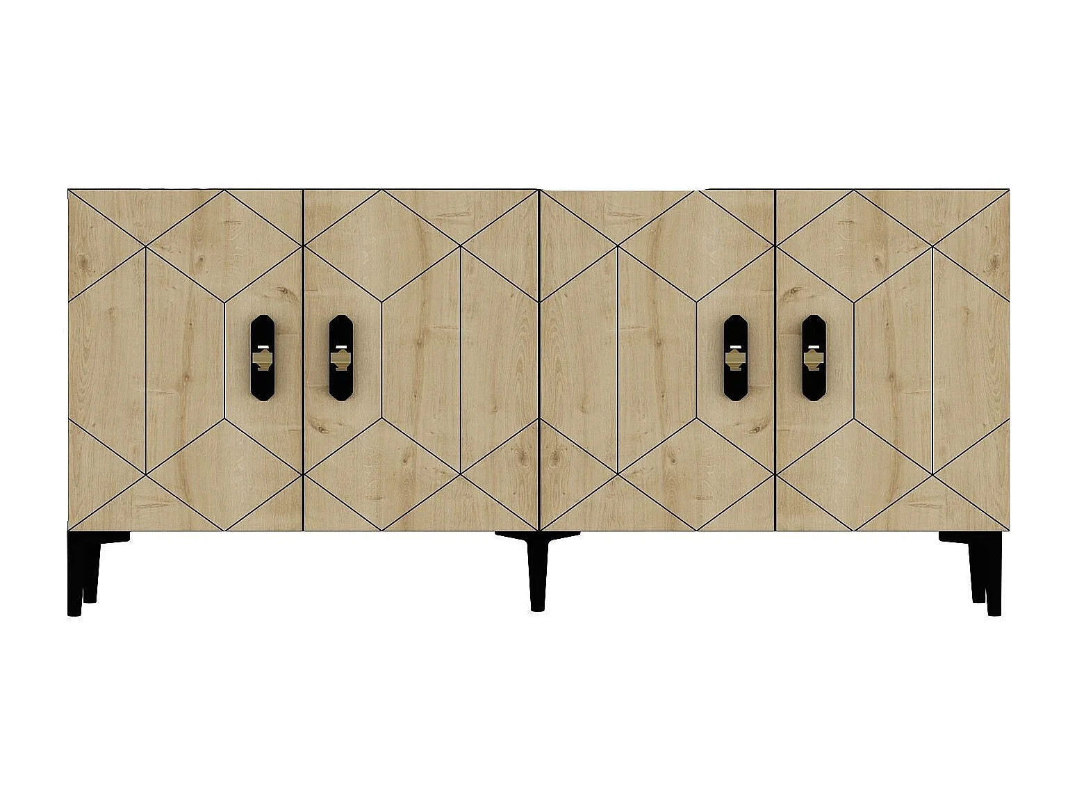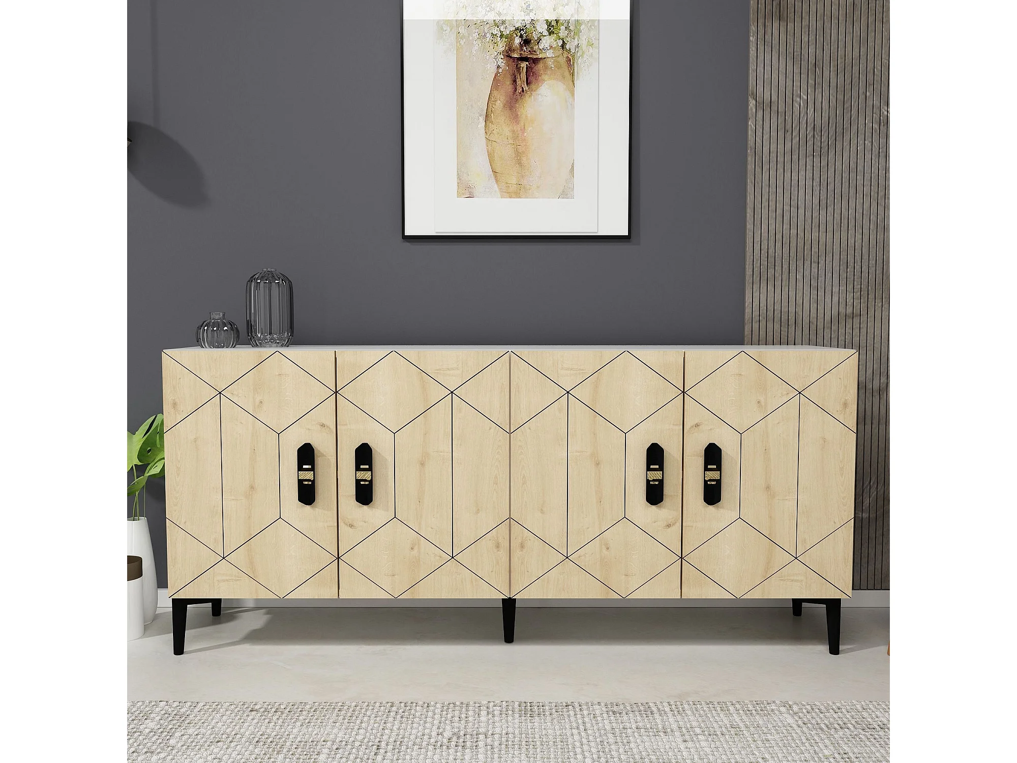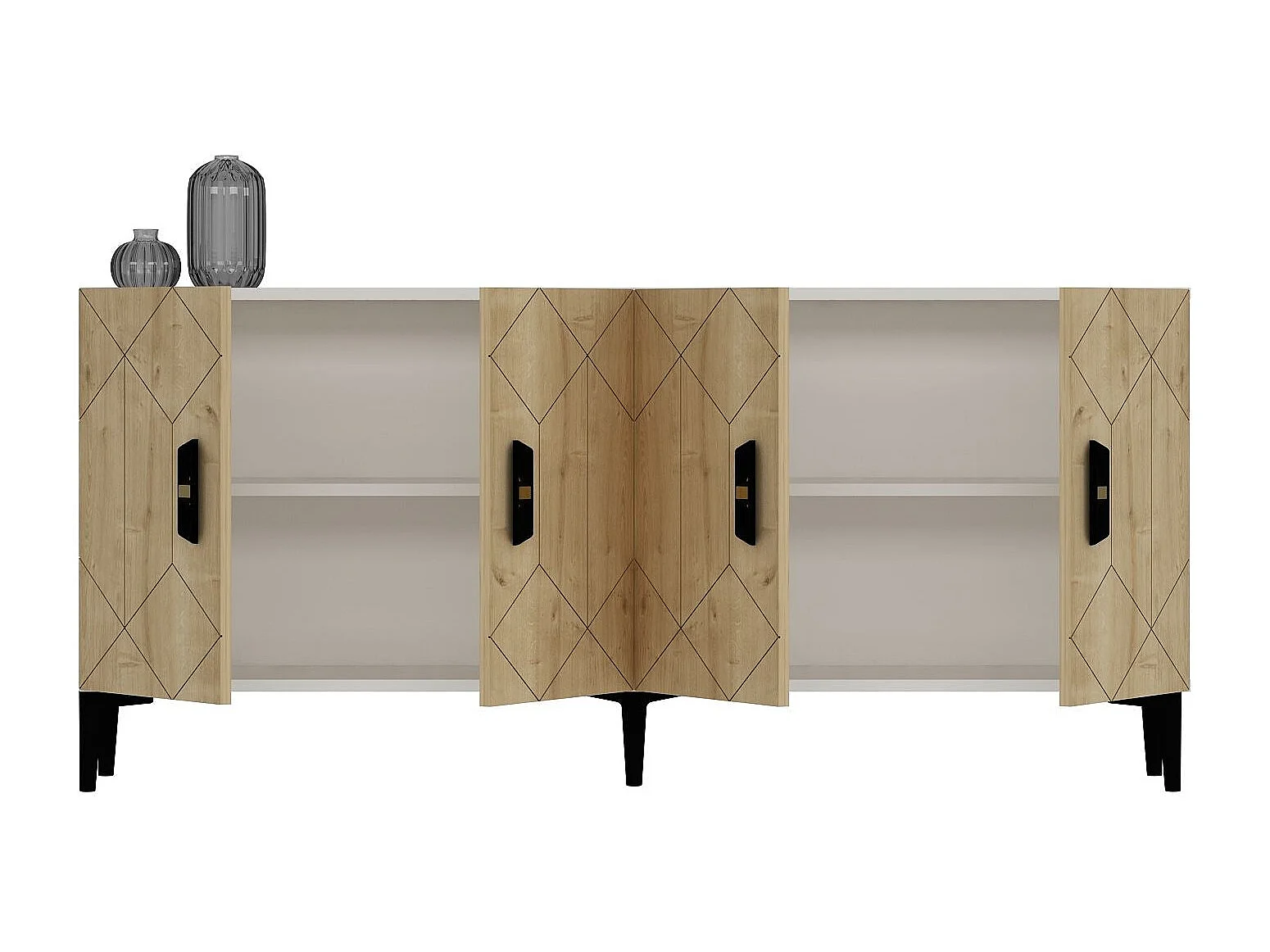 Aparador – 150 cm x 75 cm x 35 cm – Branco e Carvalho Safira – Painéis de partículas revestidos a melamina